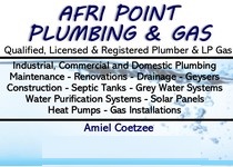 Afri Point Plumbing and Gas has qualified, registered and licenced Plumbers and Gas technicians. Our experience range over twenty years, including four years in Canada. We work in the Overberg area.