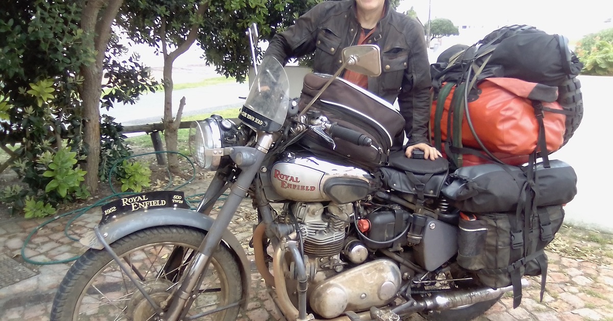 Meet Gordon May from the United Kingdom who rode from the Northernmost tip of Europe to the Southernmost tip of Africa on his 1952 Royal Enfield. Gordon took time out to rest and give his trusty bike a little TLC at Cape Agulhas Guest House.