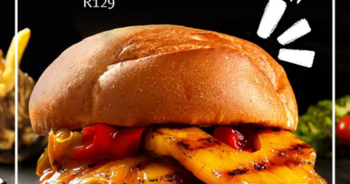 Enjoy our delicious 200g PURE beef patty, cheese, pineapple, bacon, and egg burger with crispy hand-cut chips and onion rings for R129.