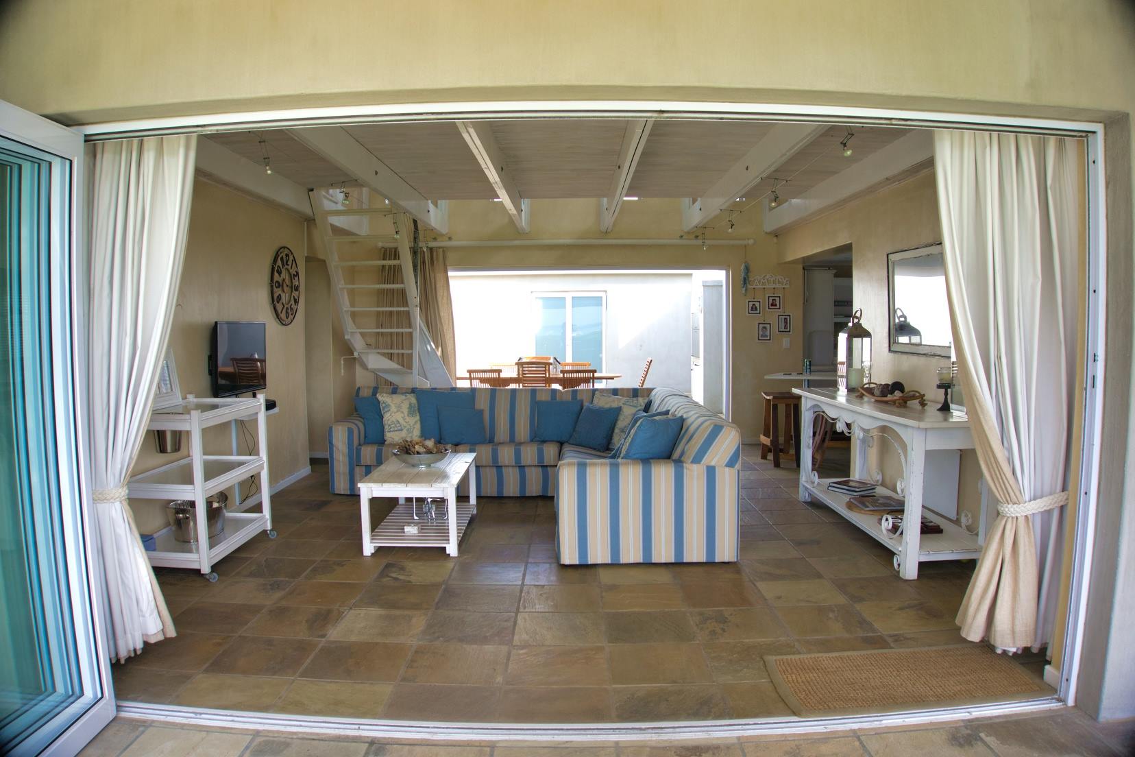 What a pleasure offering you this stunning home in “Skulpiesbaai” on Oceanview Drive. Cool, calm and sophisticated with a playful edge, this functional home is enveloped in light and comfort. Sandstone floors, loft room, gourmet kitchen, outside studio bedroom and high ceilings create a style as timeless as the sparkling ocean view. This house screams ‘designer’ and will reflect the personality and taste of those accustomed to the best in quality design, finishes and lifestyle. The living is easy in this impressive, generously proportioned contemporary residence located within level proximity to beaches, amenities and restaurants an added bonus... INCLUDING FURNITURE!