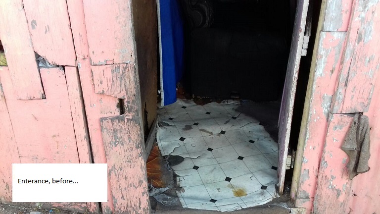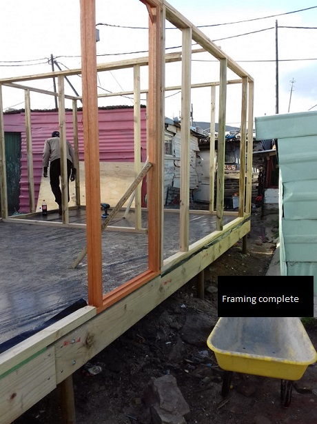 The sides of the home went up quickly and the door was installed, this home did not even have a proper door before we were asked to start with this project. Imagine living with a small child in your home while knowing that the door cannot be properly locked and secured.