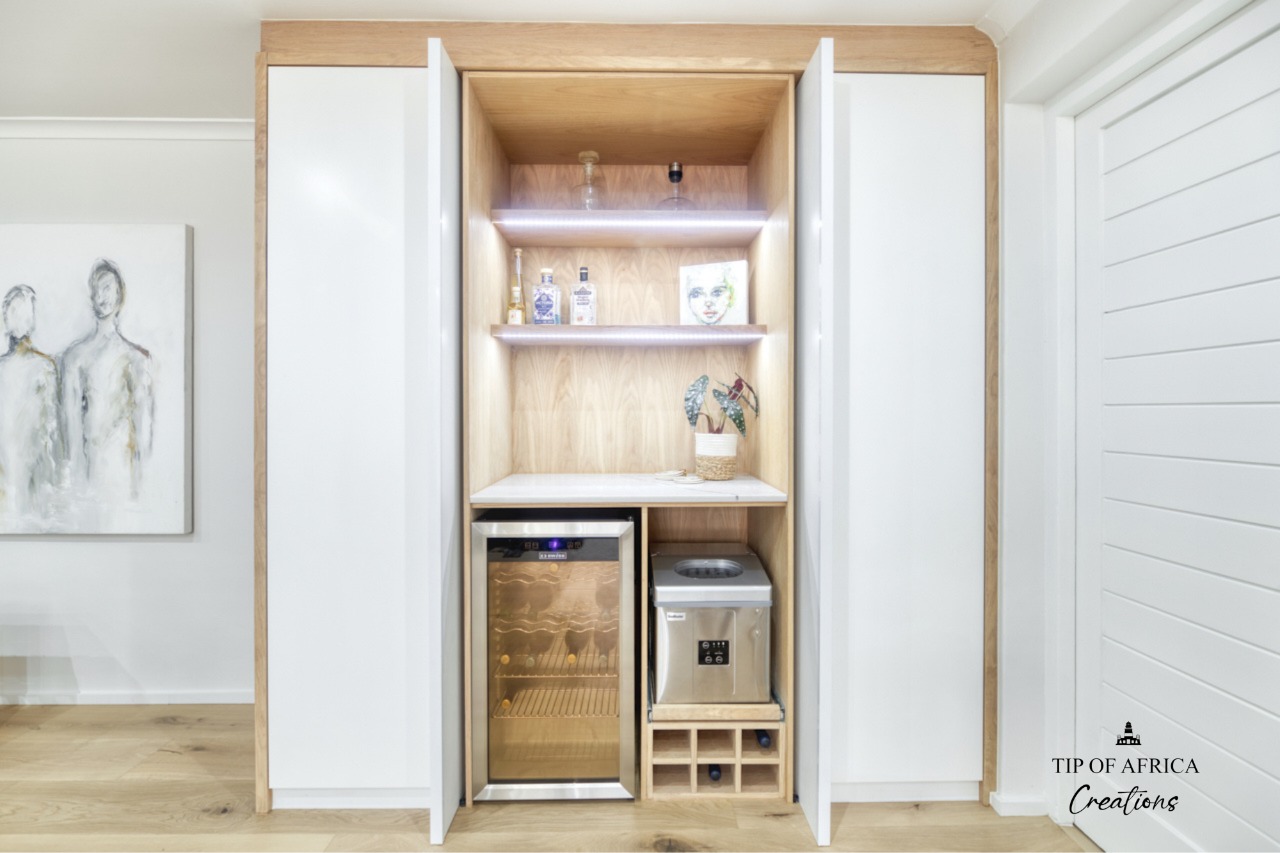 One of Tip of Africa Creations most notable commissions to date is bespoke work done at De Hoop Nature Reserve where they were responsible for the installation of the cupboards, doors and decks of Ocean House and Beach House.