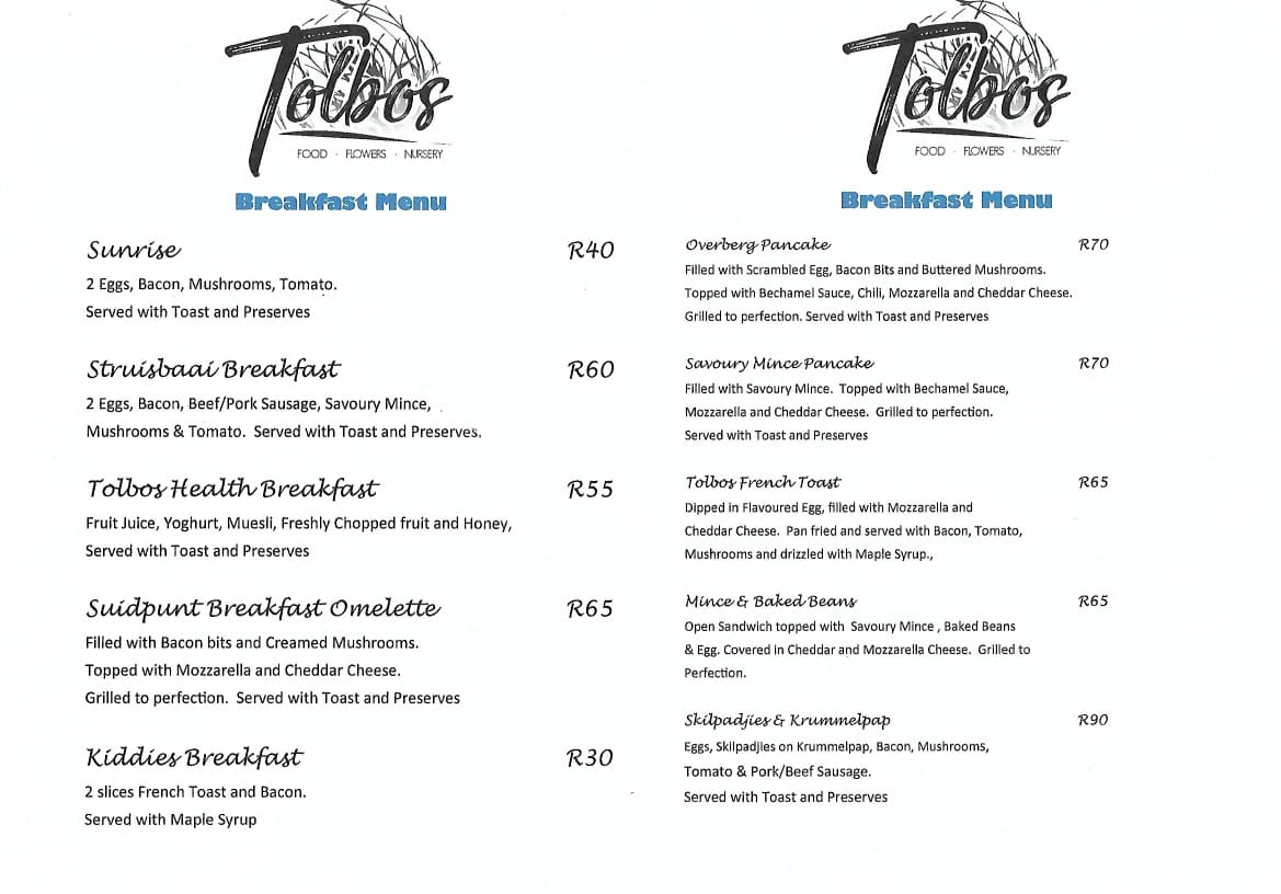Tolbos Struisbaai’s coffee shop looks out onto the tranquil garden centre and offers a choice of both indoor and outdoor seating.
