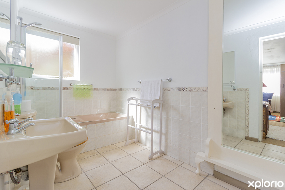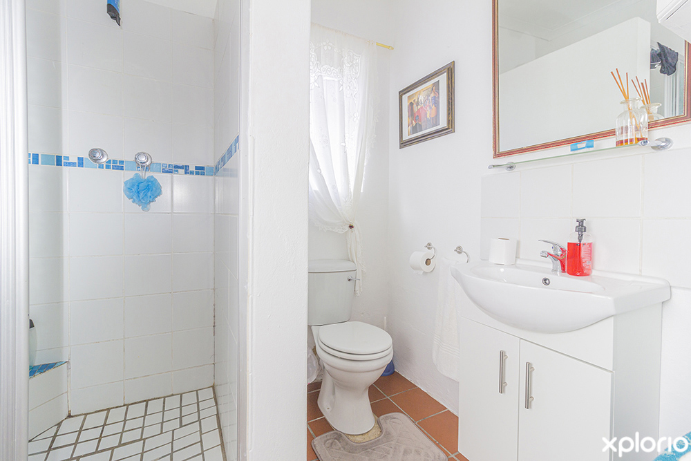 The rooms share a bathroom with a bath, shower, basin and toilet.