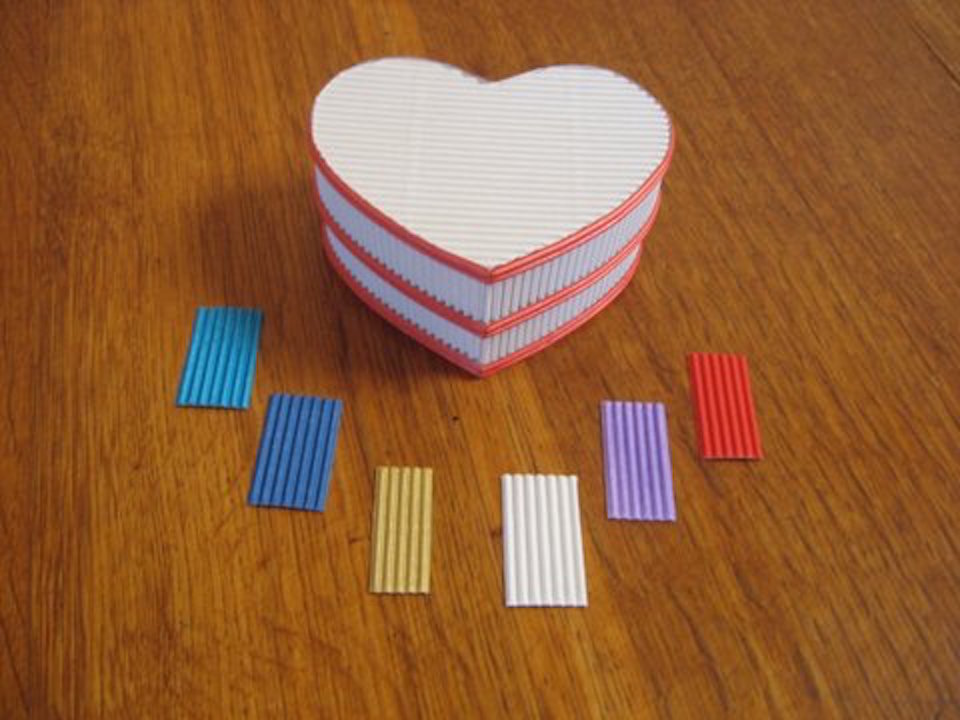 To give you an idea of price, the small heart box in the pic, 5cm high in natural card is R10.00 while the same box in white with trim is R16.40.