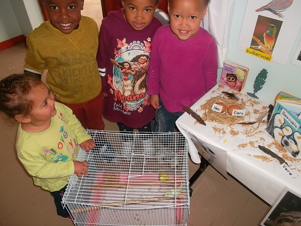 2. The theme recently was ‘Birds’ and the children collected items connected with the theme for a display to put together in the classroom. It was fun thinking of things to add to the display and there was quite a bit of discussion and organisation with Juffrou Zaan as chairman before everyone was happy with the result. Juffrou Zaan took a photo of the pleased faces.