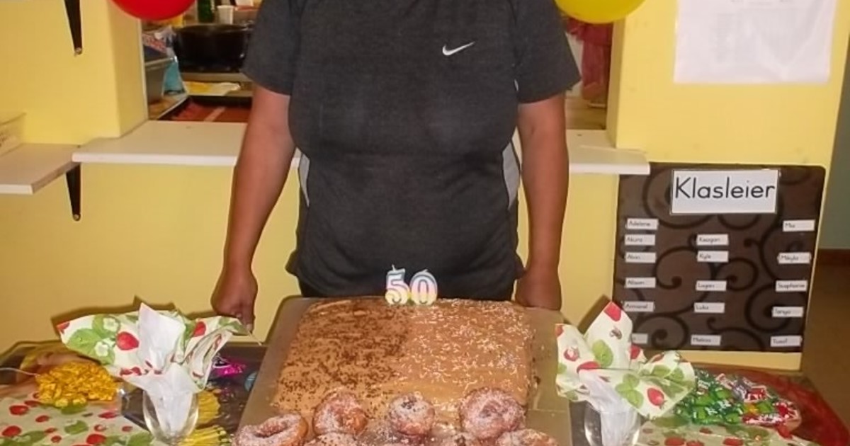A very special member of staff celebrated her 50th birthday recently and all the children and teachers gathered to sing to her and show their love and appreciation for someone who is everything to everybody at Pikkewyntjies. A special tea which for once she didn’t prepare was laid on in Louise’s honour.