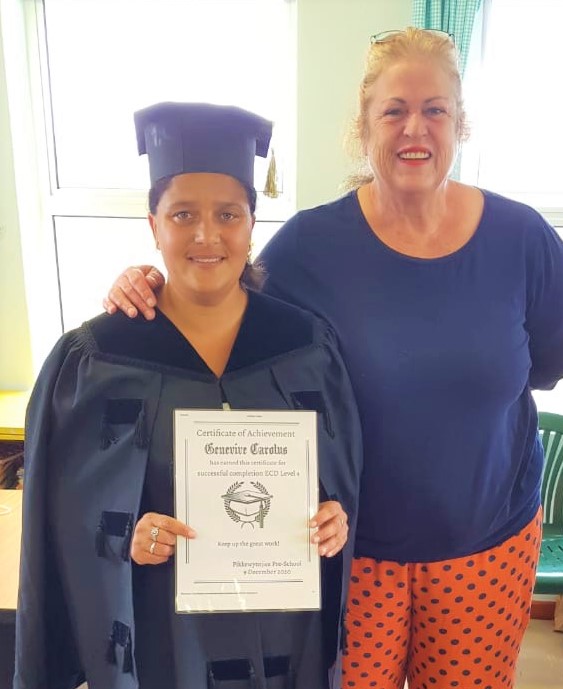 This year there was an unusual graduate to be honoured. Juffrou Genevieve obtained her pre-primary teacher's diploma from Boland College. It’s been tough working and studying part-time and we congratulate her warmly.