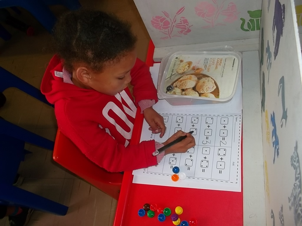 A lot of time is spent in the school day at Pikkewyntjies teaching numbers and letters and I have to say I feel quite envious when I remember how boring our ‘arithmetic’ lessons were. The lessons and practice exercises the Pikkewyntjies teachers prepare for the children are fun and challenging. Sometimes too challenging for one or other Pikkewyntjie, one can always spot the consternation, but then one of their kind teachers will come to their rescue and help them understand. Preschool is the place to do that where there is time and support in small classes.
