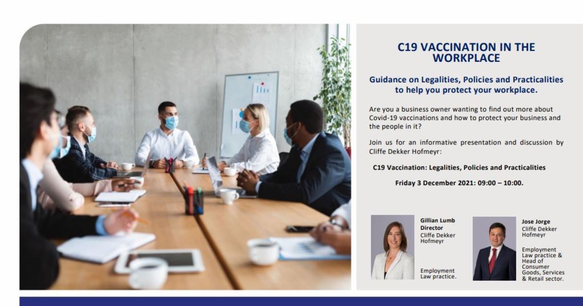Join us for an informative presentation and discussion by Cliffe Dekker Hofmeyr: Guidance on Legalities, Policies and Practicalities to help you protect your workplace.