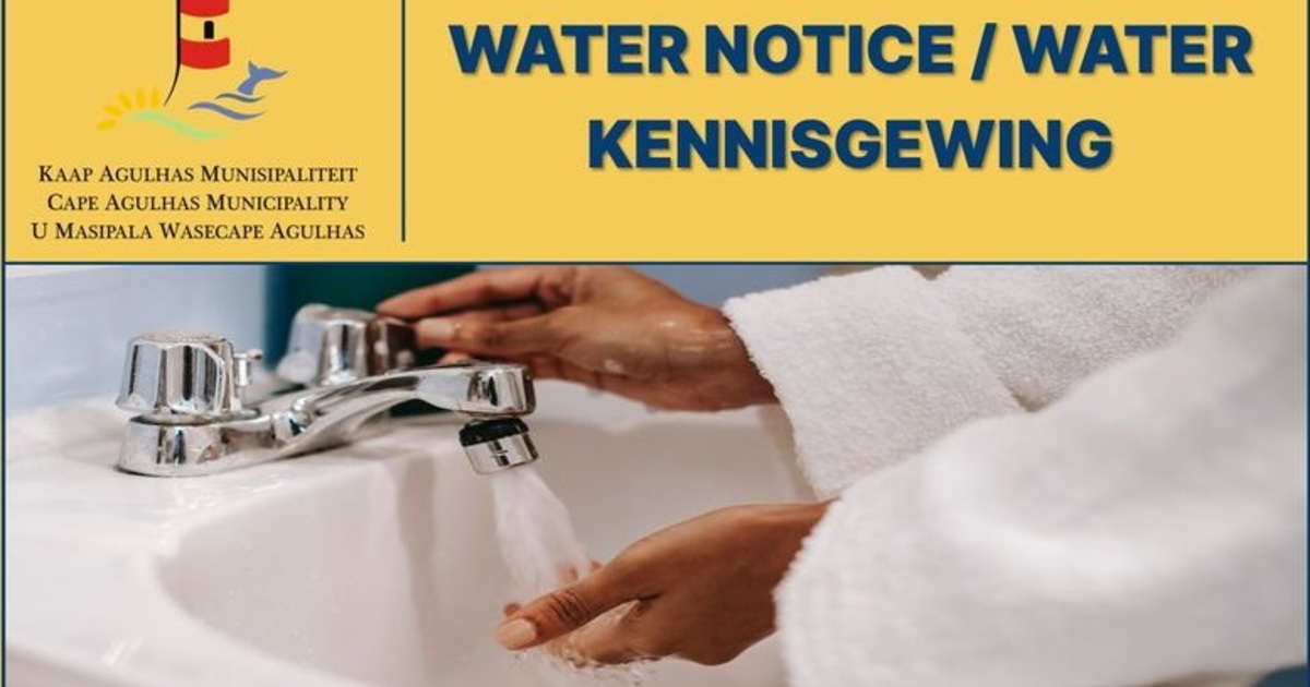 Kaap Agulhas Munisipaliteit beplan die opkoppeling van aansluitings op die waterlyn te Duinelaan, (Volstruiskamp Area), Bredasdorp vanaf 28 Julie 2022. Die watertoevoer, te Duinelaan en omliggende strate, sal van tyd-tot-tyd afgesny word gedurende hierdie tydperk. Ons vra om verskoning vir die ongerief wat dit mag meebring.