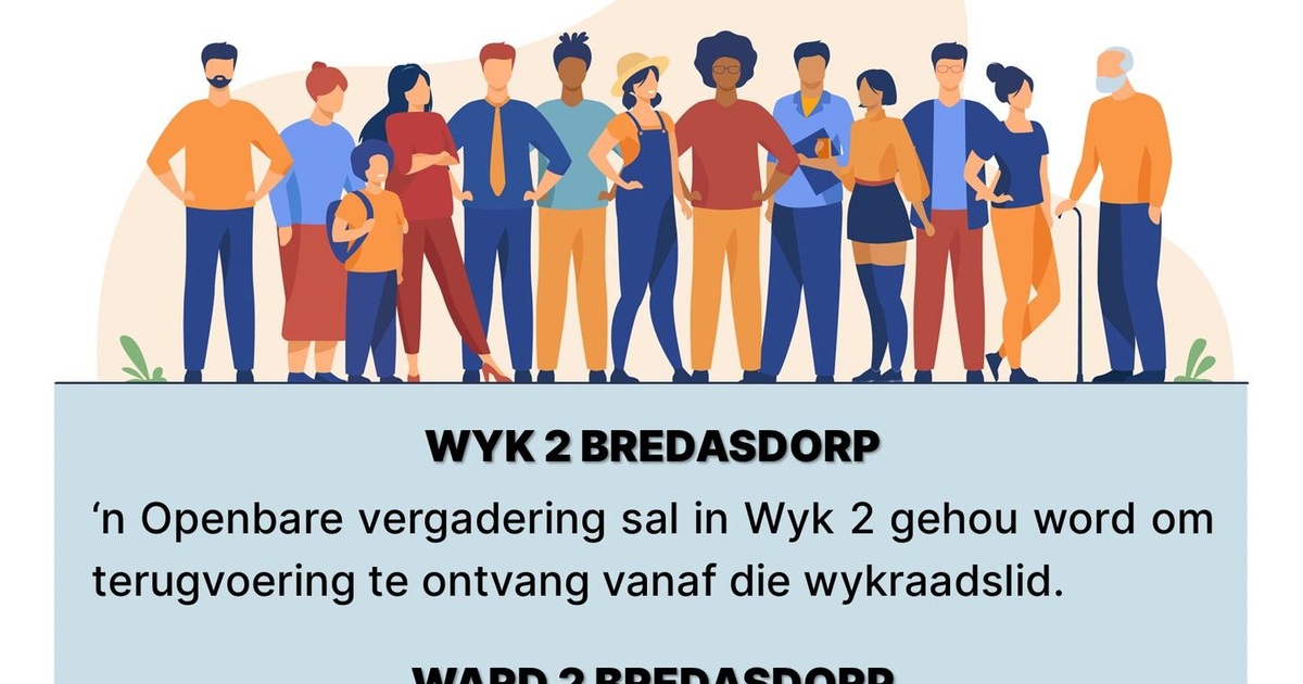 ‘n Openbare vergadering sal in Wyk 2 gehou word om terugvoering te ontvang vanaf die wykraadslid.