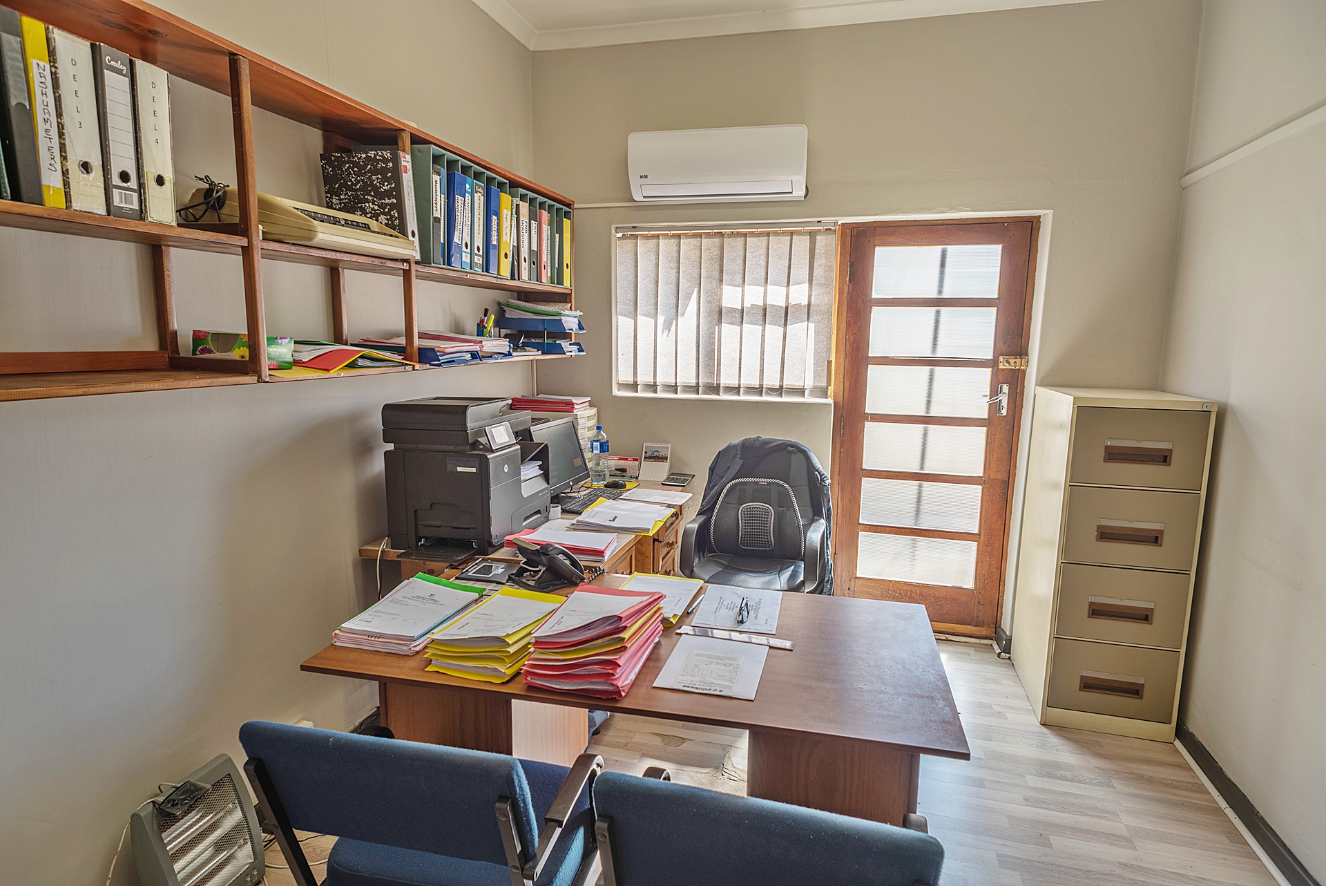 The property consists of six offices, a large three bedroom, two bathroom house and a two bedroom, two bathroom cottage. Being in the CBD it offers many options, e.g., letting the offices to an attorney firm or turning it into a doctor's practice. Both the offices and the main house face Long Street. The office part consists of a reception area, 6 offices, a toilet, inside and outside storerooms, an outside washroom, a loft and a build-in walk-in safe. The flooring is part wood and part laminate.