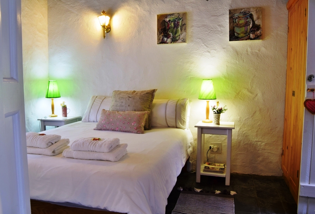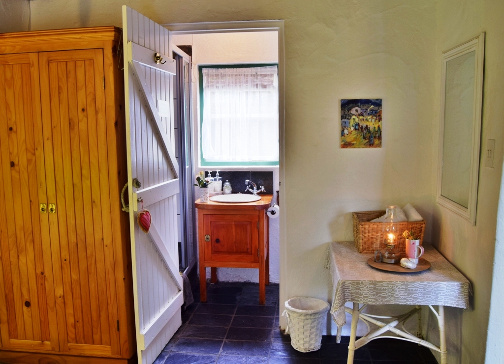 Saartjie is cosy and romantic. The decor embraces simplicity and honest living. Saartjie has a double bedroom with en-suite bathroom (shower only). Crisp white linen and towels are provided. The living area is furnished with two single beds, a dining table and a TV with local channels. The kitchen is well equipped and the courtyard offers safe parking, barbecue facilities and a pergola where guests can relax.