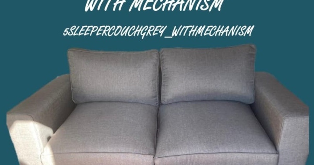Beautiful grey fabric sleeper couch with mechanism available at House of Carpets, Furniture & Appliances Bredasdorp!