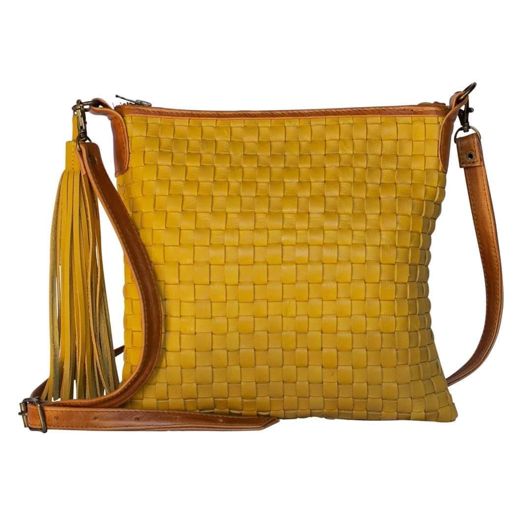 The Alexa handbag in mustard is handmade in South Africa by our very talented, artisan women. This bag tells the stories of the masterful hands who created it and is made to last a lifetime.