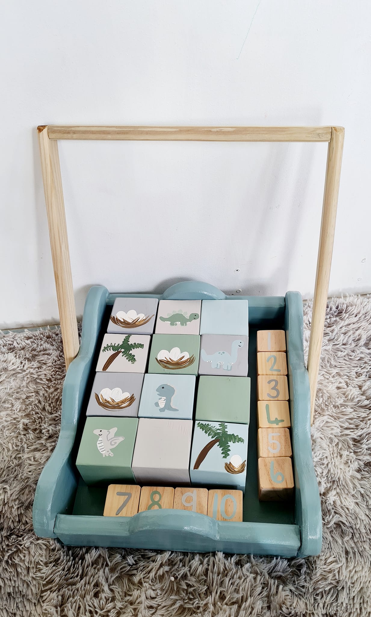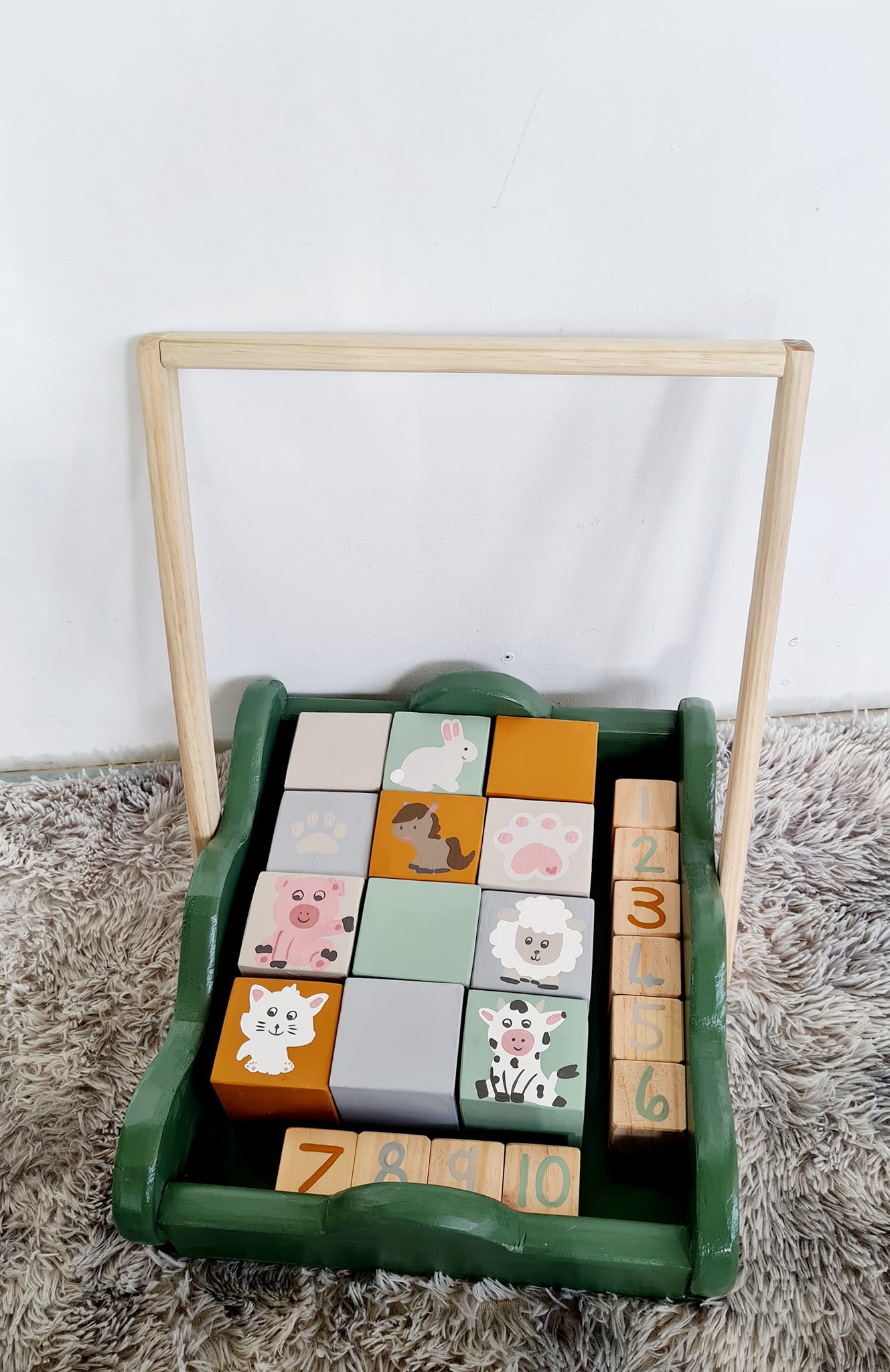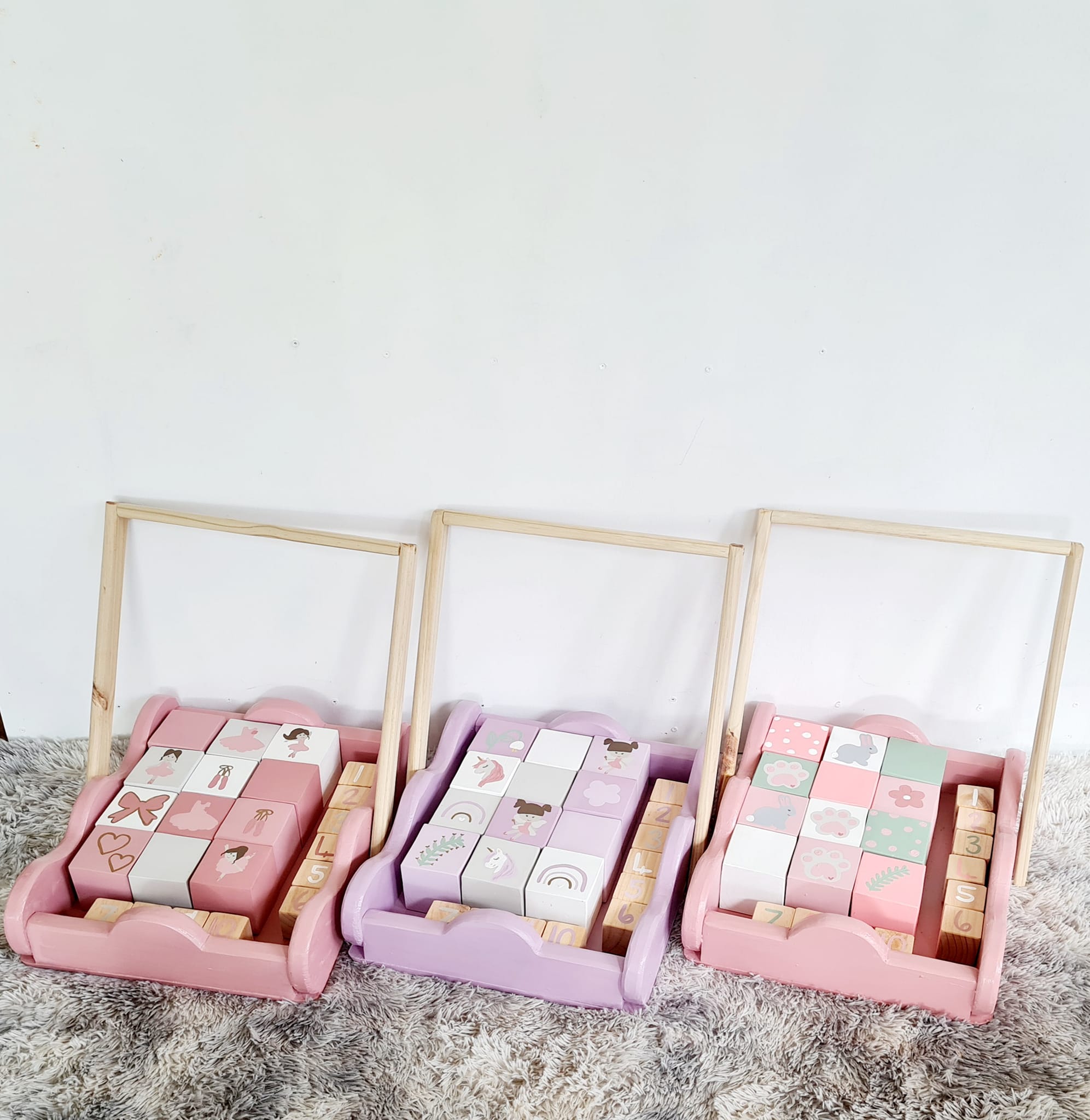 This stunning wooden push car set is a great way for your little one to start learning to walk, or for those already walking to have loads of fun. It is convenient to help keep all the blocks together. This wooden push car is made with the idea for your little one to be able to explore with the convenience of having their own set of wheel with awesome blocks to enjoy the journey with. The cart is made nice and sturdy and it should not tip over.
