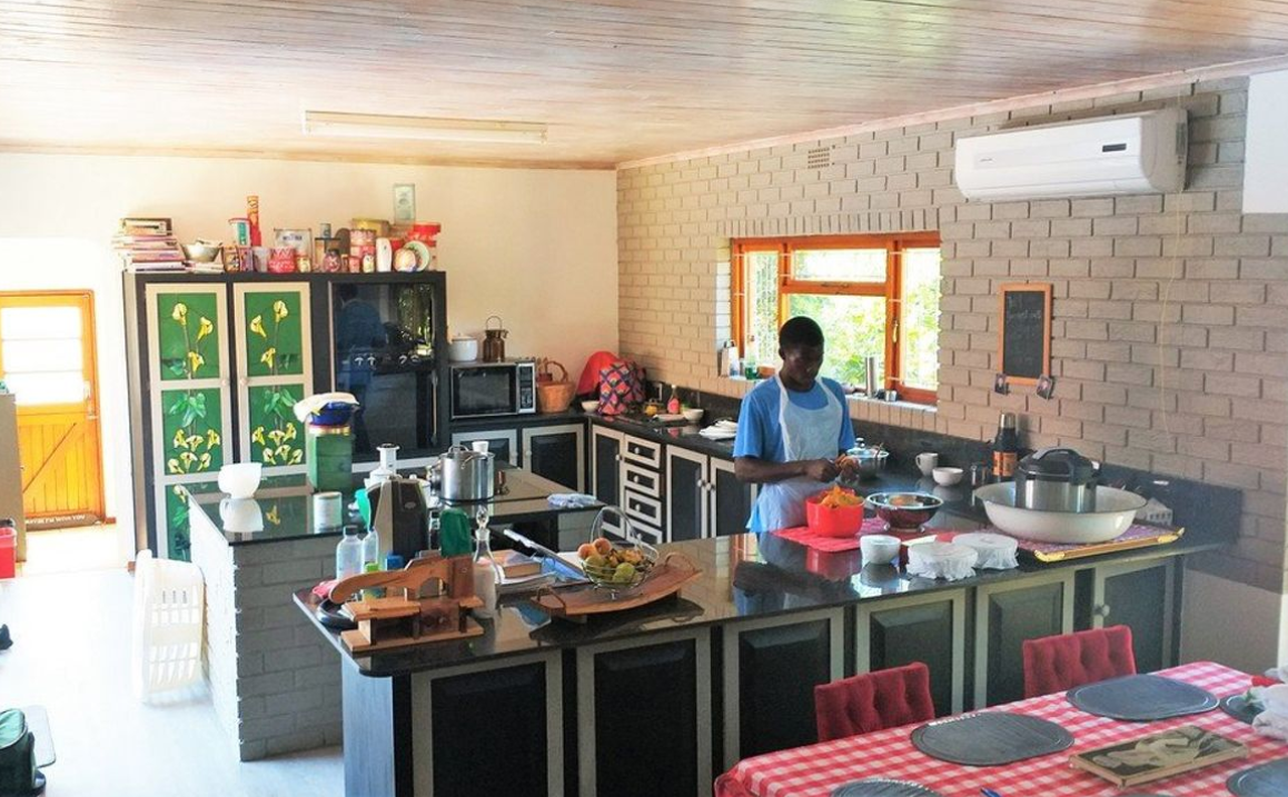 Combining indoor and outdoor living in this country house with its beautiful, lush garden where a huge oak tree spreads its branches protectively is easy.