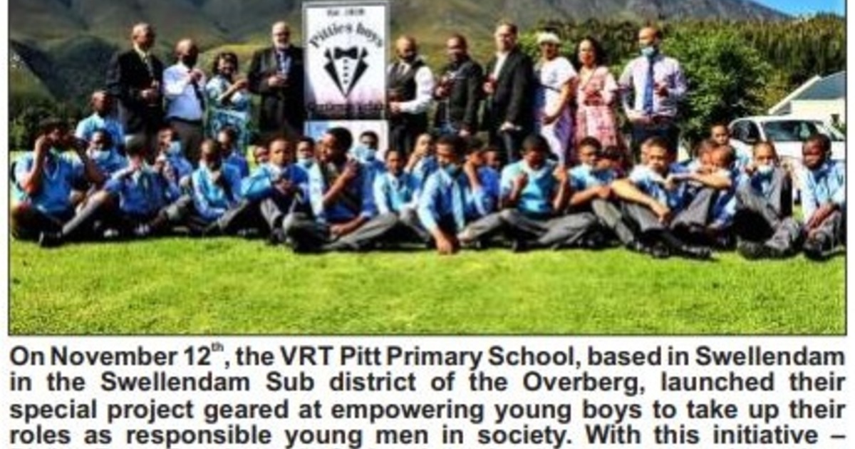 Op 12 November is wat bekend staan as die “Pitties Boys Gentleman's Club”, amptelik bekendgestel. Die klub is 'n inisiatief van die VRT Pitt Primêre Skool in Swellendam en is gestig met net een doel voor oë: om van jong seuns verantwoordelike jong manne en broers te maak deur aan hulle die regte leiding te gee, gebaseer op Christelike waardes.