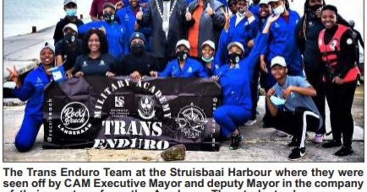 "A change is as good as a holiday” lui die Engelse spreekwoord. Ware woorde, want verandering werk wondere, al moet 'n mens steeds hard werk en hard oefen. Die groep het gekom met 'n voorstel om 'n uithou en aanhou reis al langs die mees suidelike kuslyn van die destydse Port Elizabeth - tans bekend as Gqeberha - tot in Saldanhabaai te onderneem. Min het hulle op daardie stadium geweet dat hulle in 1982 'n trotse tradisie wat in 2022 'n volle 30 jaar op die kerfstok sal hê, begin het. Aangesien die studente self alles organiseer, onder die bekwame en wakende oog van hulle bevelvoerders en mentors, word die jaarlikse goedgeorganiseerde Trans Enduro toer beskou as 'n uitstekende oefenlopie in organisasie, skakeling en openbare betrekkinge. Langs hierdie weg word die toekomstige offisiere van die SuidAfrikaanse Weermag wat aan die Akademie studeer, deeglik voorberei vir hulle toekomstige aktiewe loopbane in die SAW. Afgesien van die fisiese uithou aktiwiteite ter see en op land, samel die studente ook geld in vir hulle MASIZA gemeenskapsuitreikprogramme waarby ons streek nou ook al by meer as een geleentheid gebaat het.