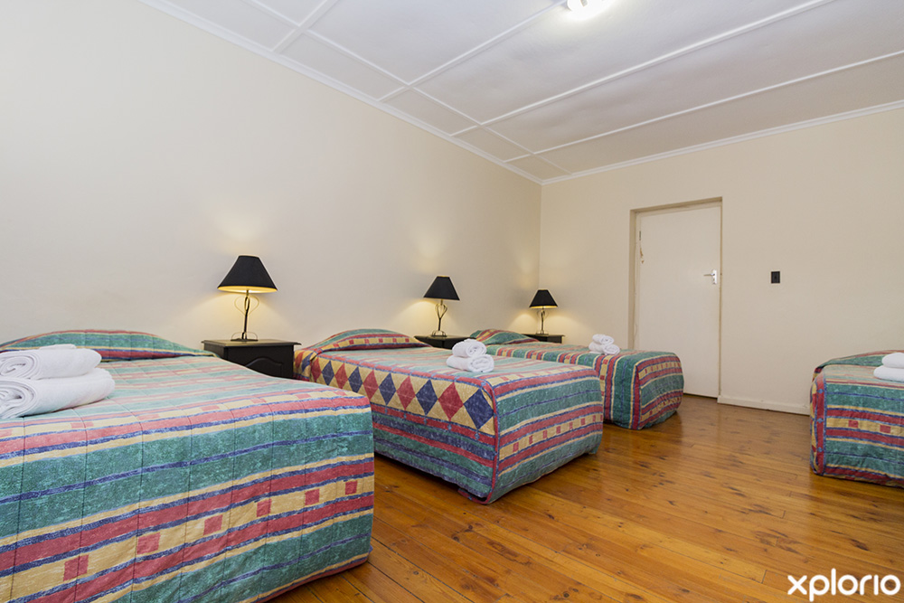 The Back-Packer Communal Room has four single beds and shares a bathroom with the Deluxe Budget Room and the Monthly Boarder Rooms. The bathroom has a bath / shower, a basin and a toilet.