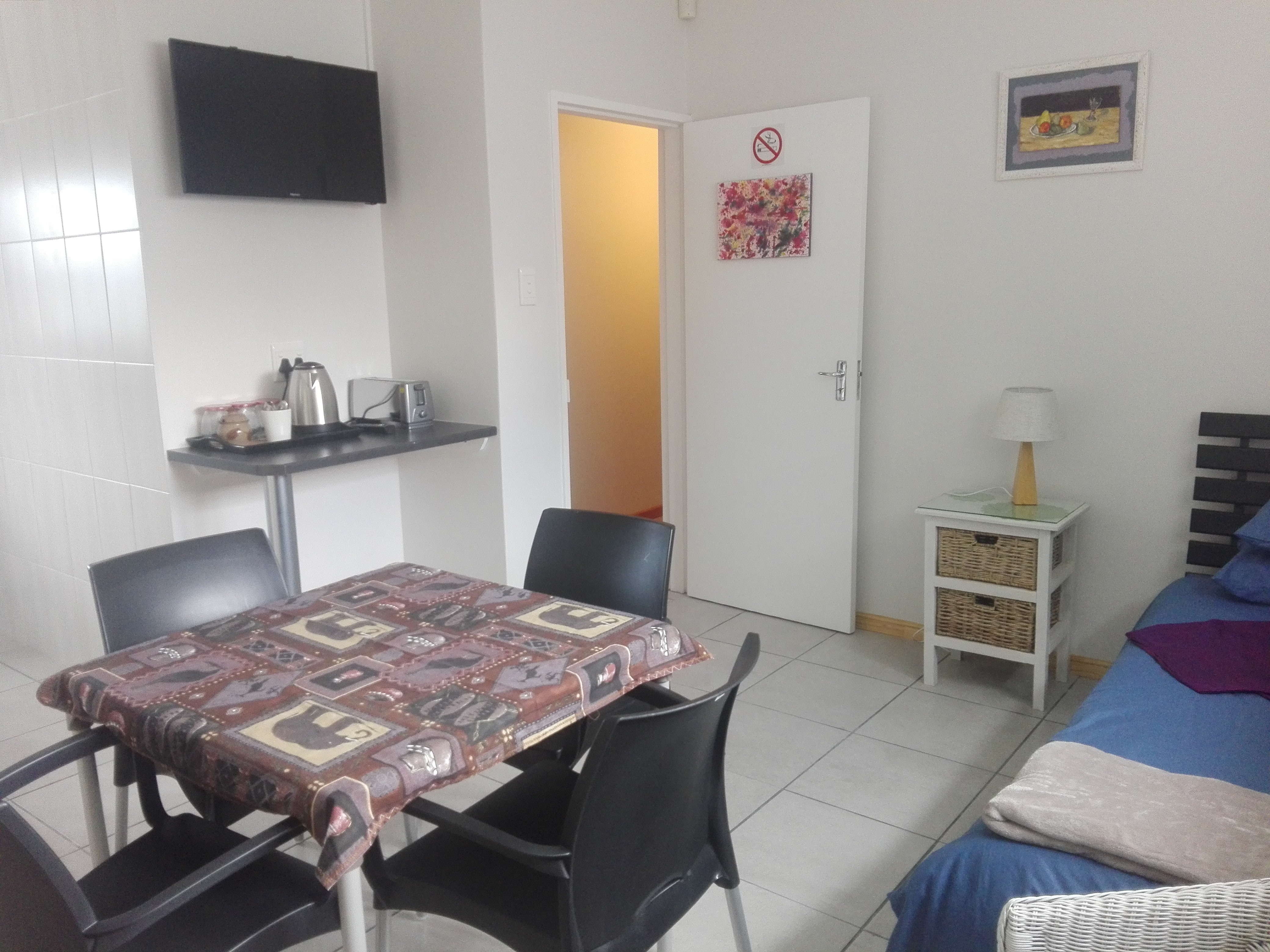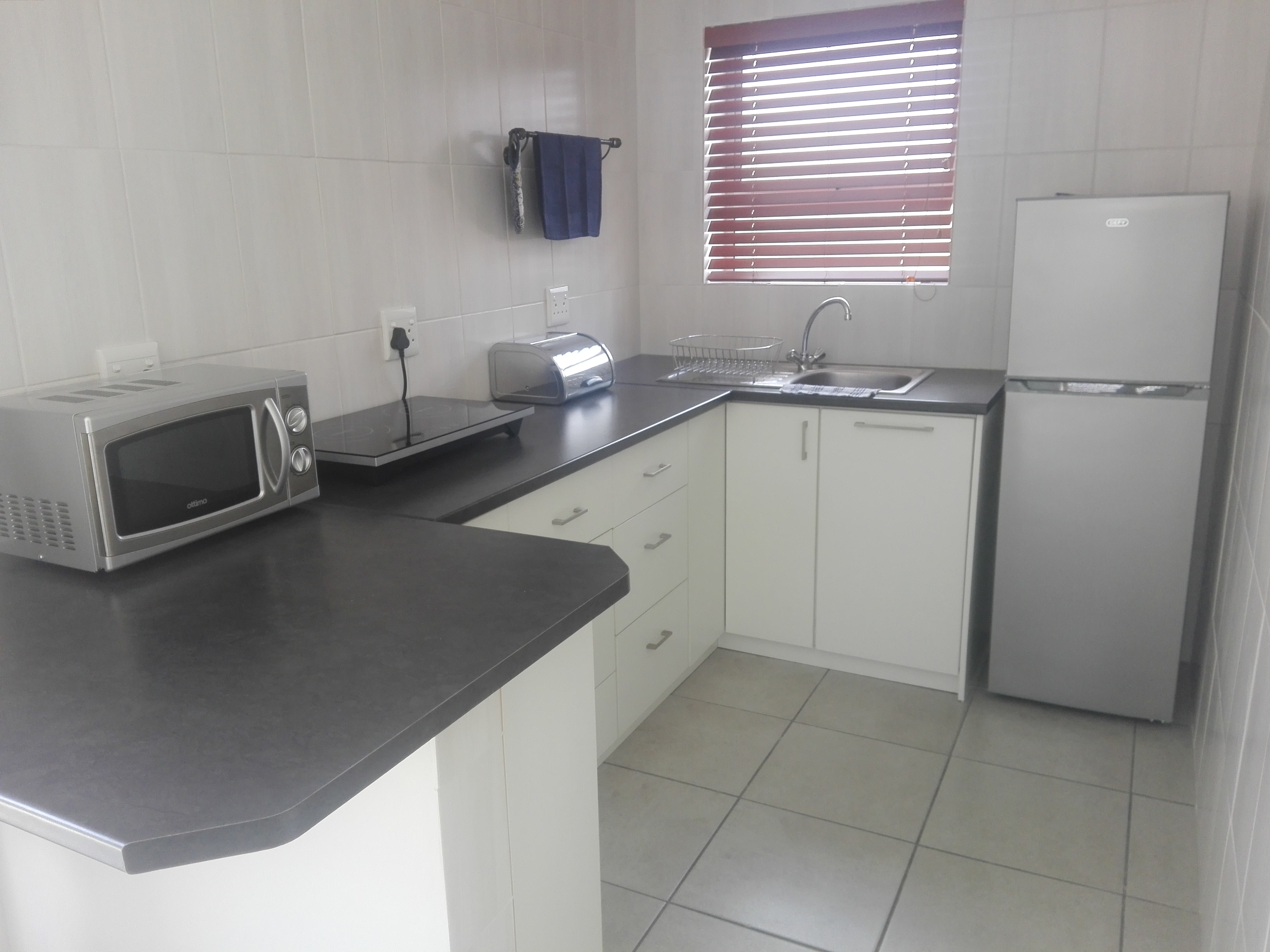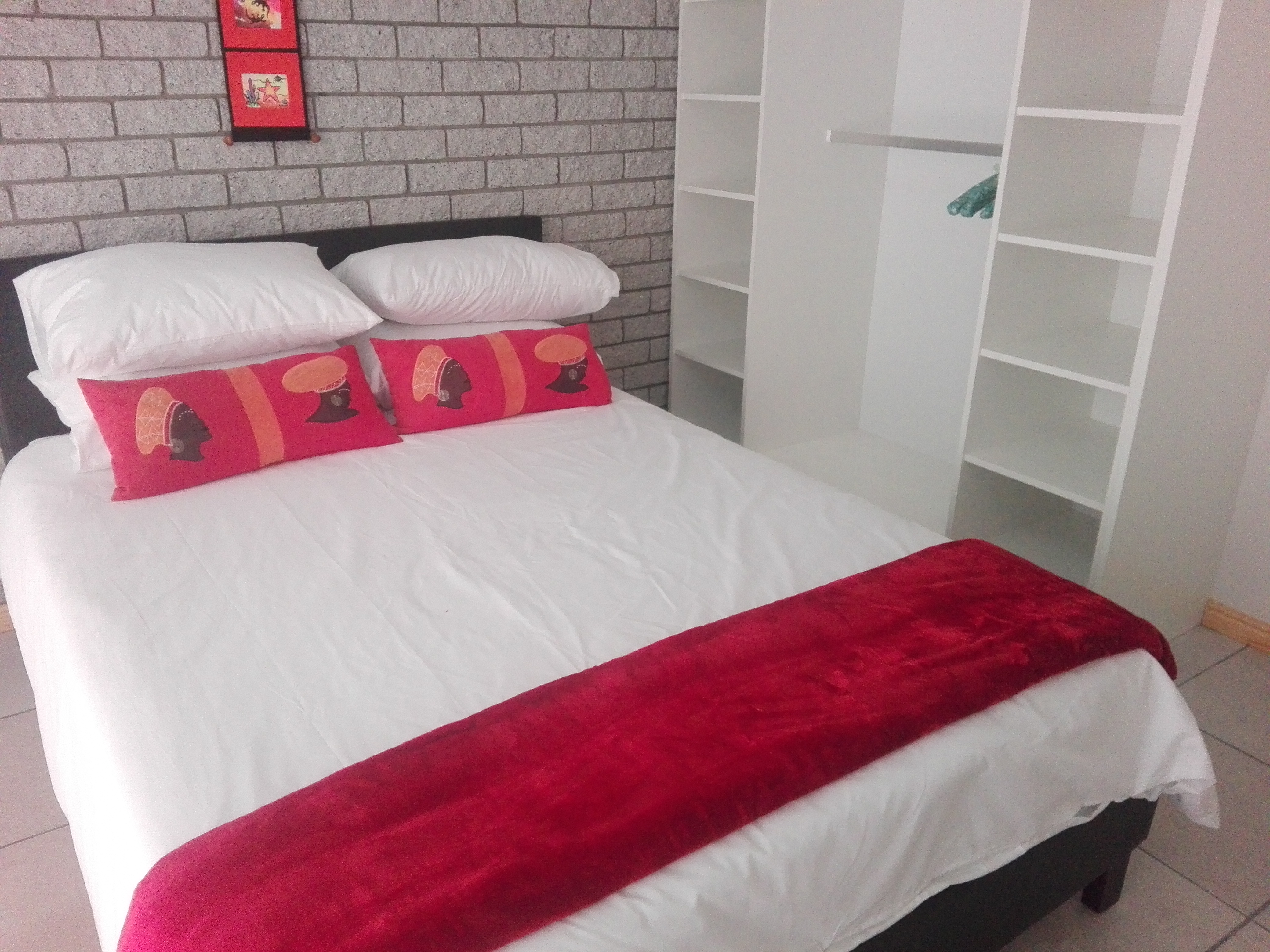 Private and secure self catering flat to rent from @ R 800 per night, in Perlemoenbaai, just before you get into Gansbaai. Walking distance from coast. Secure parking, outside braai facility and swimming pool. Sleeps 4, one double bed in one room, one single bed in one room and another single bed in the open plan / kitchen area. Flatscreen TV with TV1, 2 and 3. All kitchen utensils are supplied - microwave, toaster, kettle, fridge, induction stove, everything is there. Linen and bath towels are supplied, please bring your own swimming towels.