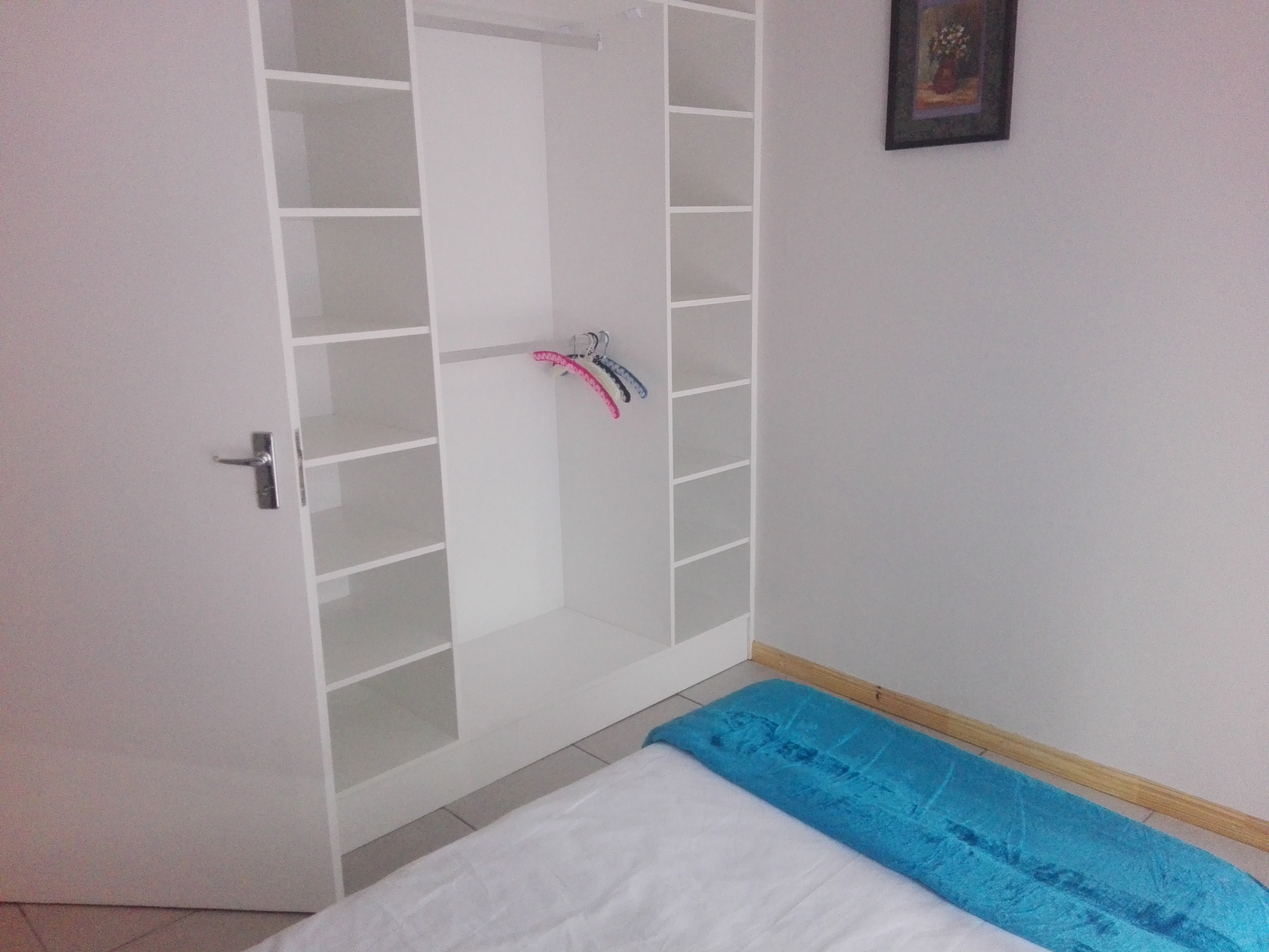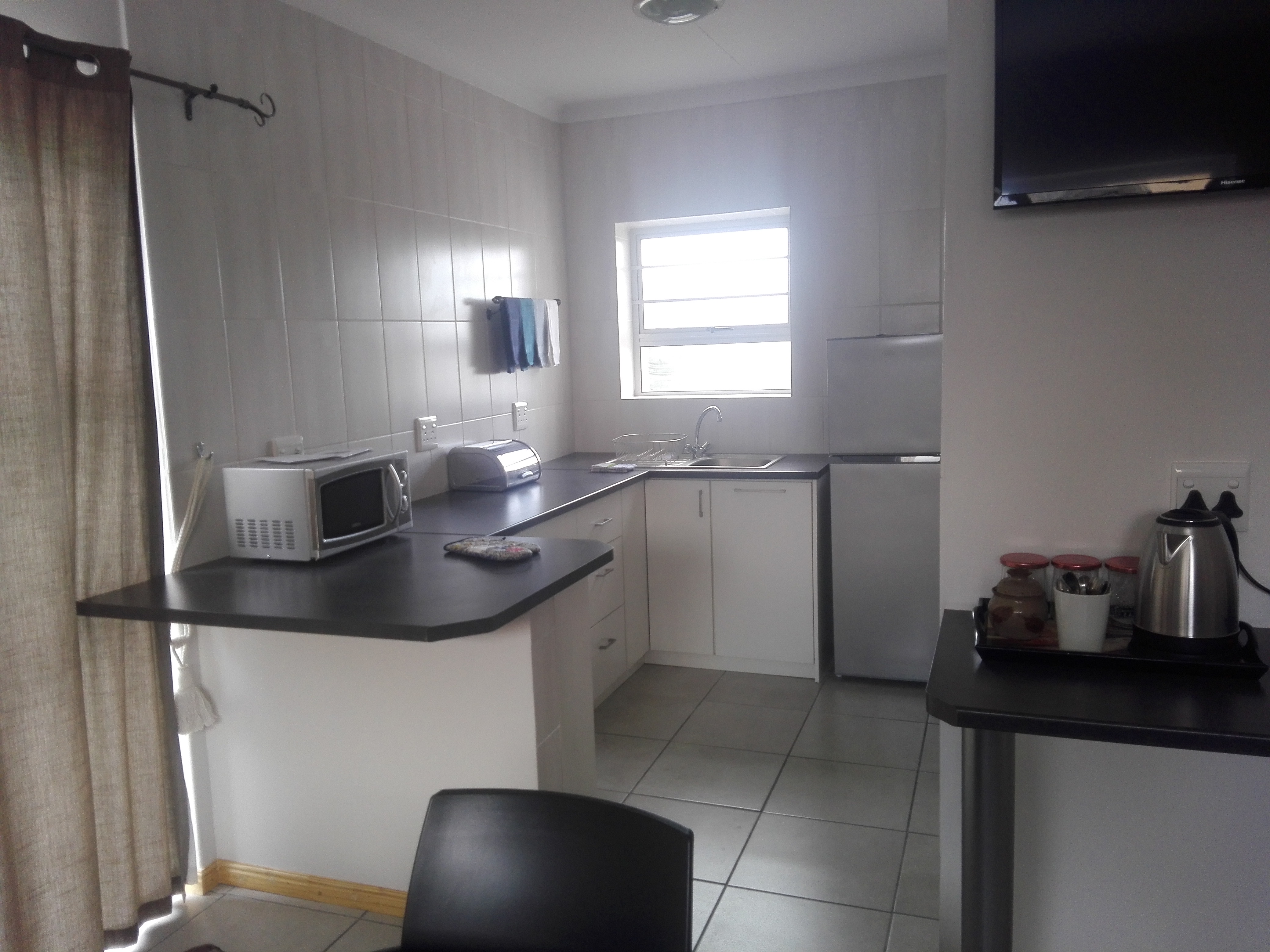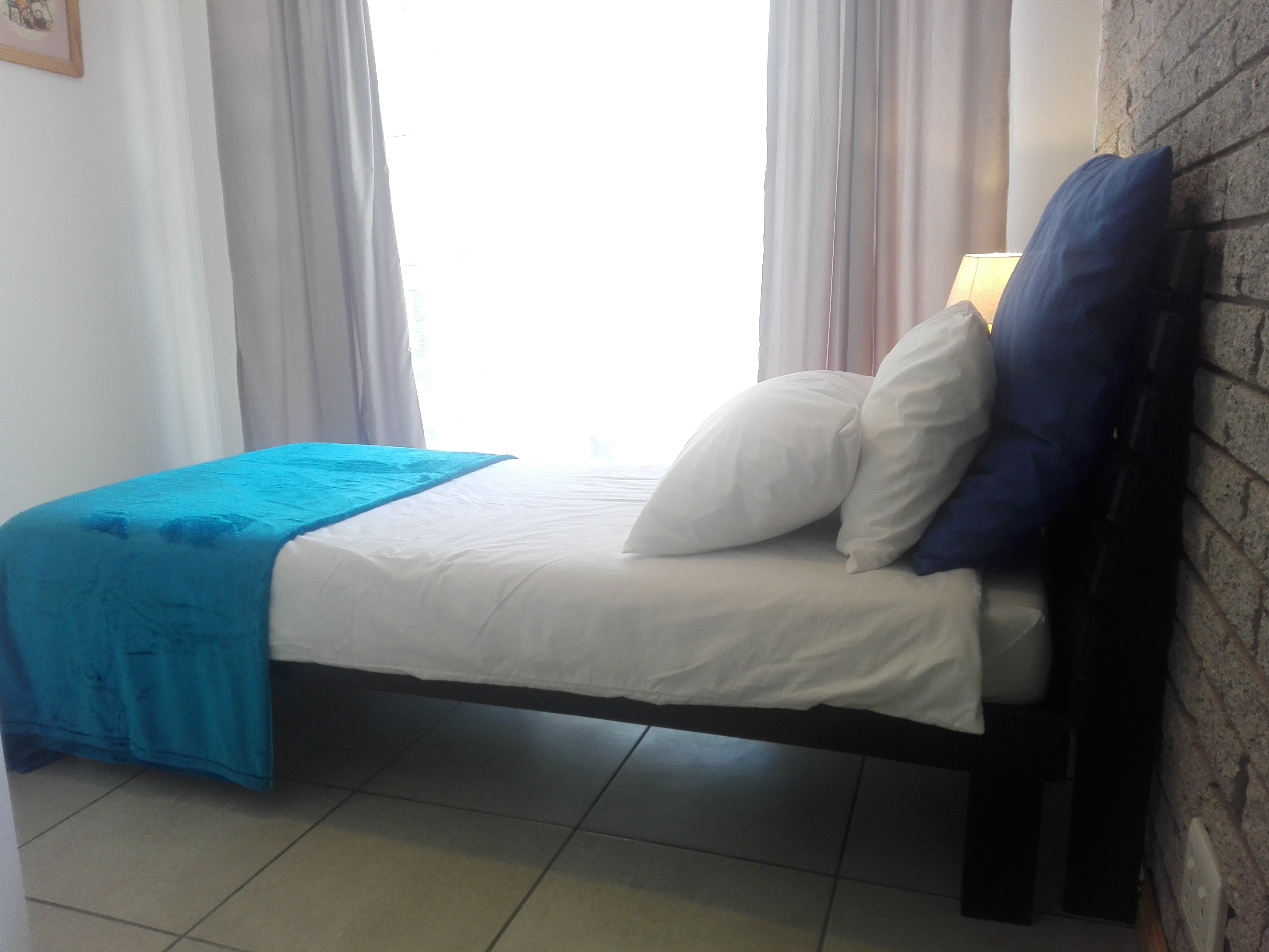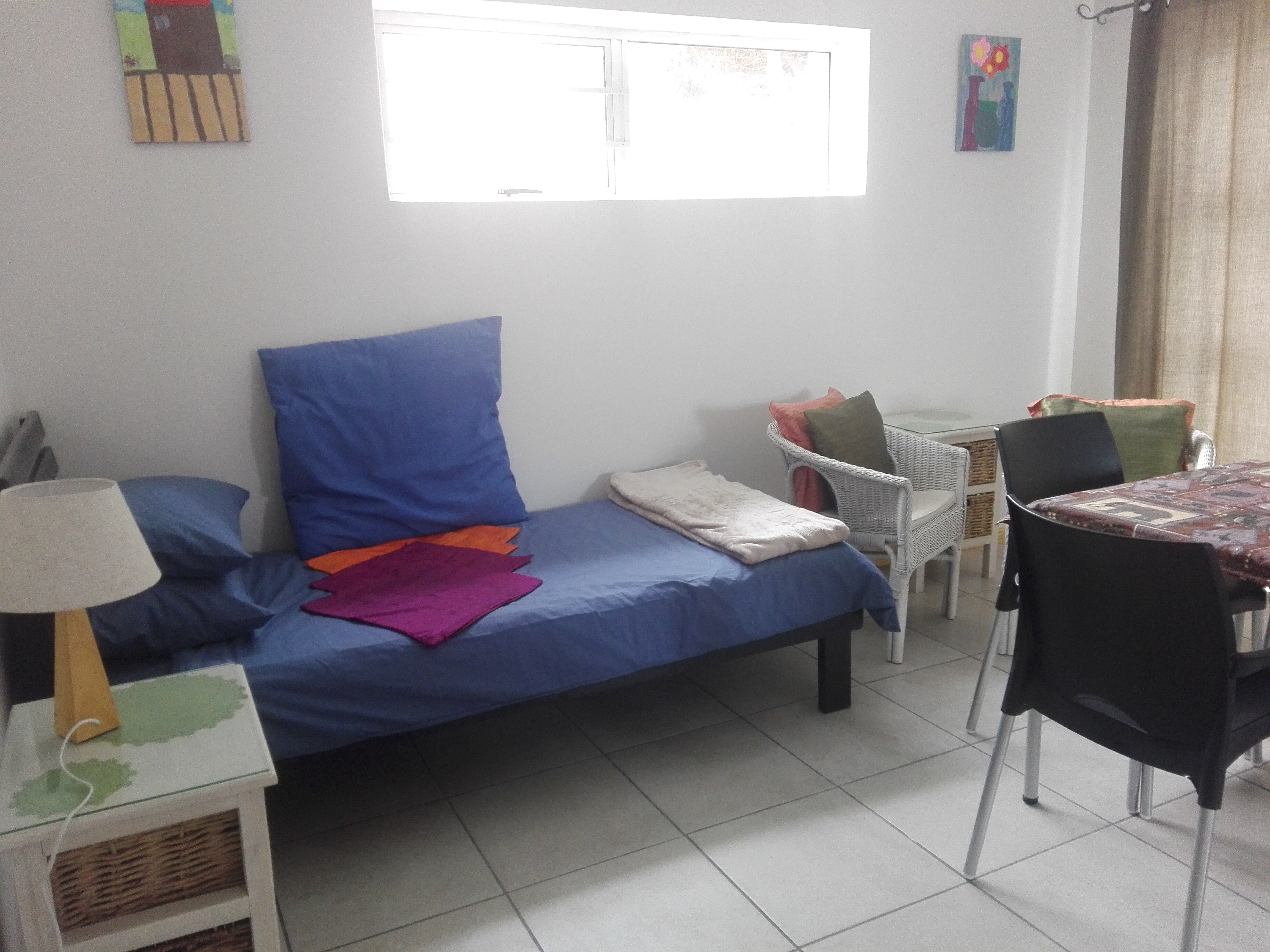 Private and secure self catering flat to rent from @ R 800 per night, in Perlemoenbaai, just before you get into Gansbaai. Walking distance from coast. Secure parking, outside braai facility and swimming pool. Sleeps 4, one double bed in one room, one single bed in one room and another single bed in the open plan / kitchen area. Flatscreen TV with TV1, 2 and 3. All kitchen utensils are supplied - microwave, toaster, kettle, fridge, induction stove, everything is there. Linen and bath towels are supplied, please bring your own swimming towels.