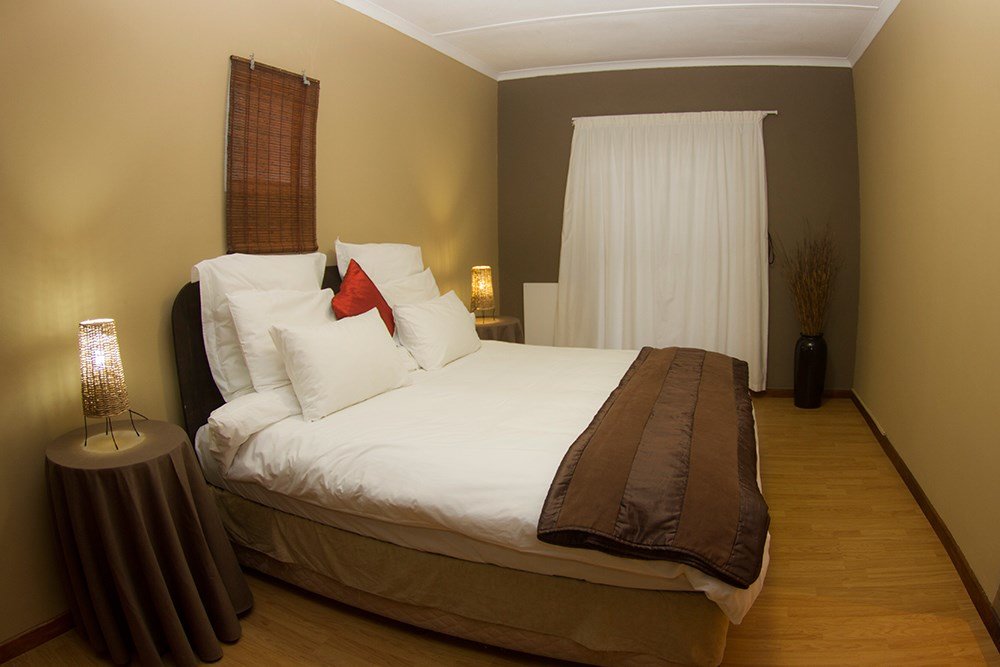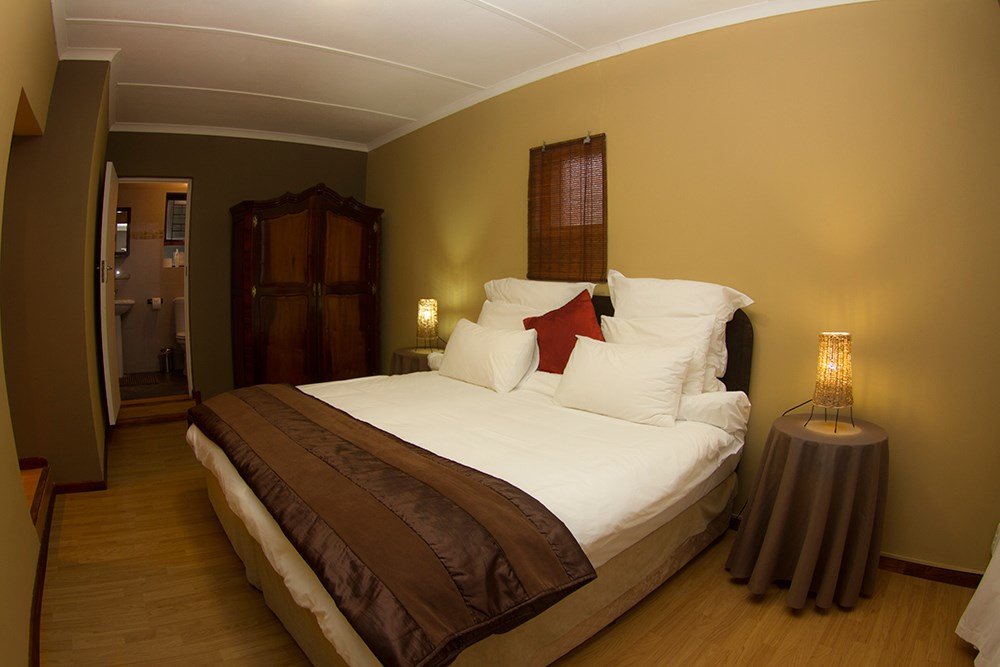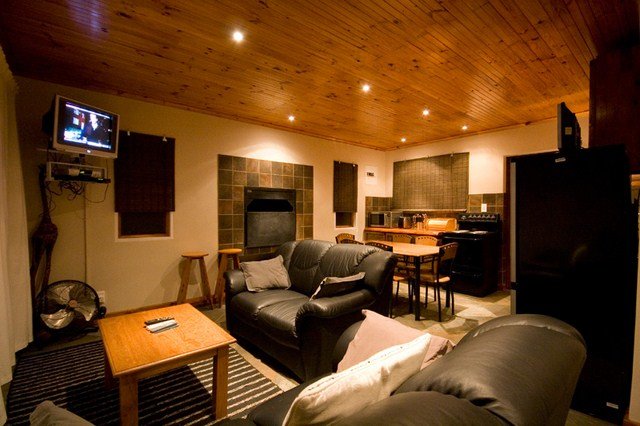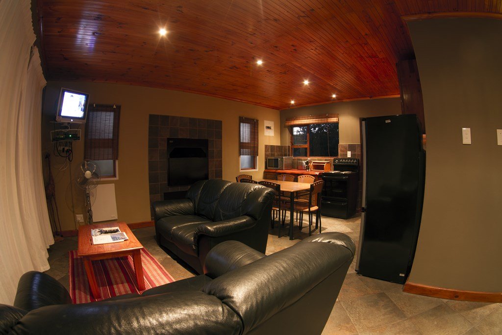 The cottage has a stunning living room with a combination of rough early walls and wood finishes. The room is an open plan living room and kitchen with indoor braai, Free WIFI, DSTV (Hotel Package) and guests have access to the rooftop Jacuzzi at the Roundhouse Guesthouse!!