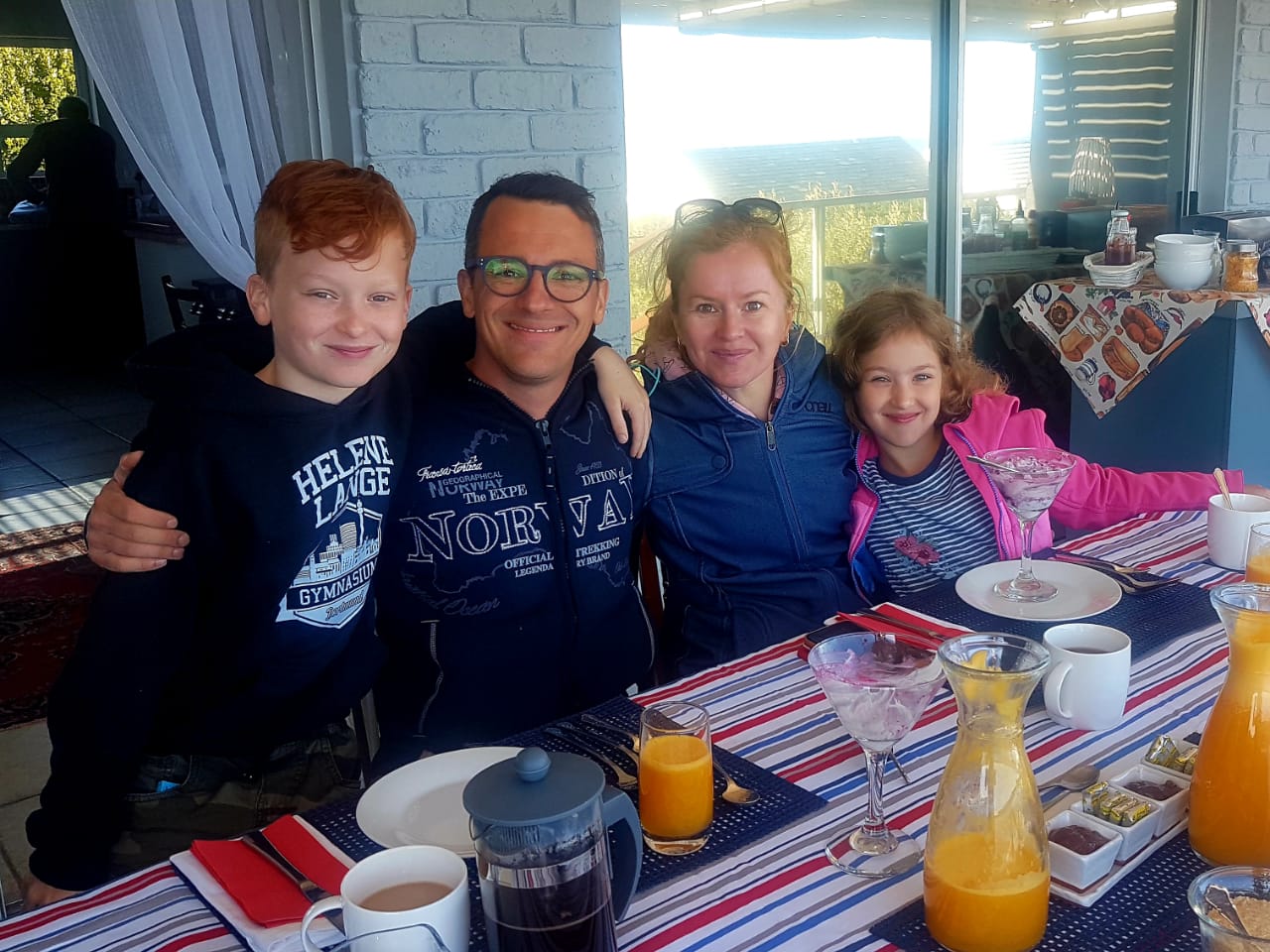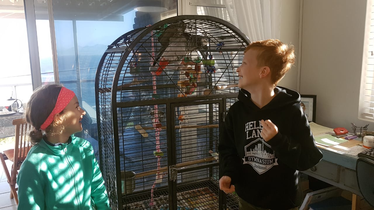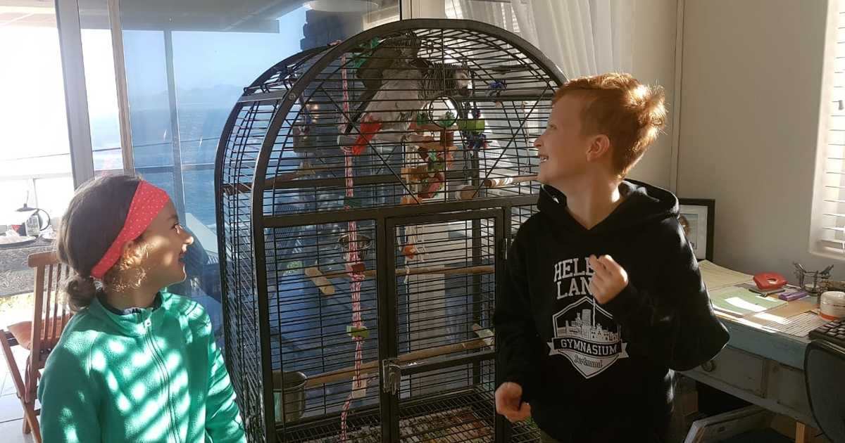 See below images of the Kueppe family having some good time at breakfast and the parrot entertaining the kids!
