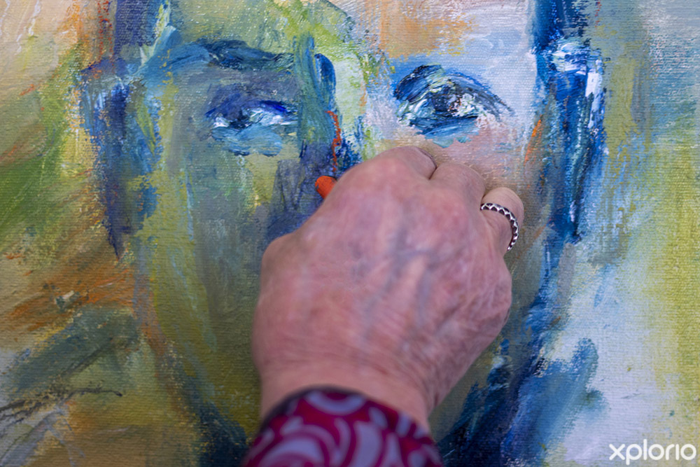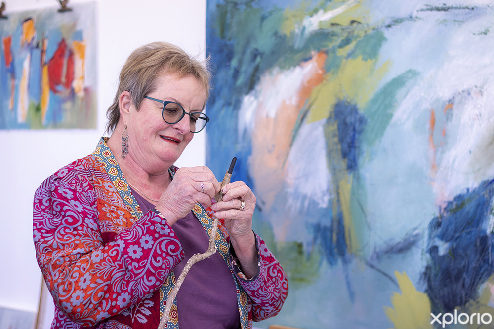 Rouvé paints mostly in her private art studio at home in De Kelders. Her studio has a panoramic view of Walker Bay’s ocean and mountainscapes. This tranquil sanctuary is a calm creative space that resonates joy. For added inspiration and communication with fellow artists, she is part of an artist’s group based in Onrus, Hermanus.