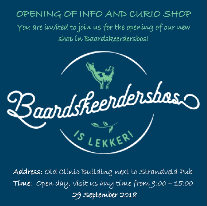 Our info shop next to Strandveld pub offers information on what to do and see in BBos and stock a range of local and homemade products and crafts.