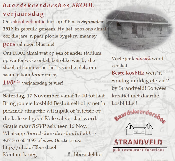 Baardskeerdersbos Is Lekker is here to bring together the people of BBos and introduce them to the world out there. We want the world to know about us and come share in what BBos has to offer.