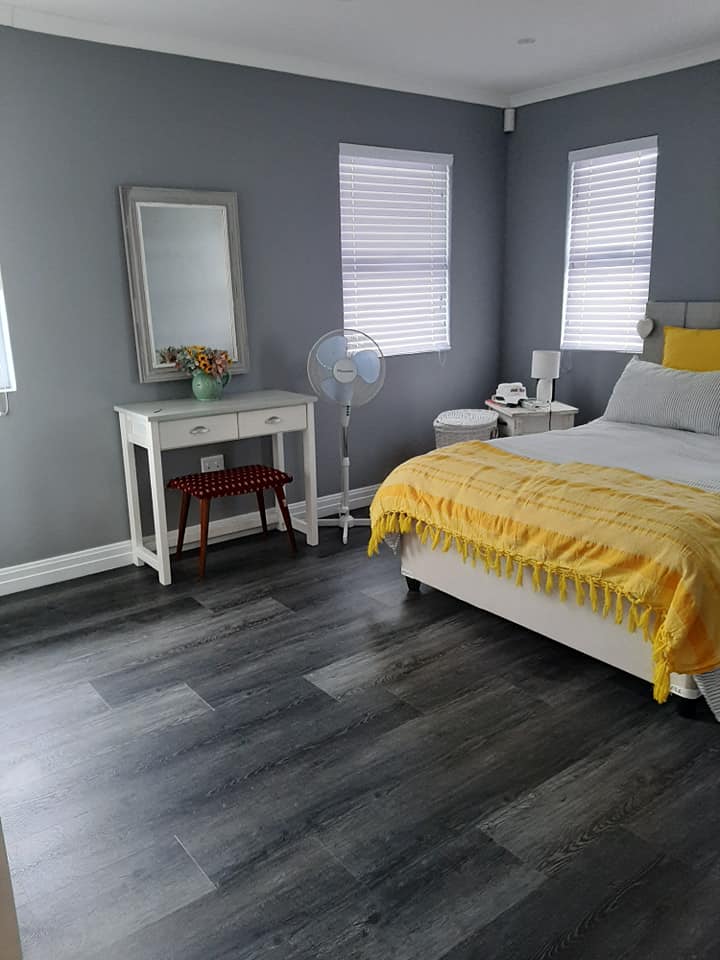 I am so incredibly proud of my team on this wonderful 225m2 SPC installation. Now for you who don't know what SPC is? It is a click vinyl rigid board that is hard-wearing, water-resistant and can almost be installed anywhere. The added 1.5mm underlay backing gives the benefit of reduced sound reduction and a very comfortable underfoot feel. With people wanting to install over tiles without the hassle of screeding of floors, this is your product. We also rounded this off with these wonderful 110mm "green" skirtings.
