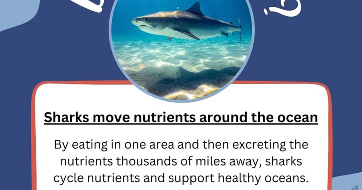 Did you know that sharks move nutrients around the ocean, which supports the well-being of all marine ecosystems? Some sharks are migratory species, which means they travel thousands of miles across the oceans each year. By eating in one place and excreting waste in another, they cycle nutrients between ecosystems.