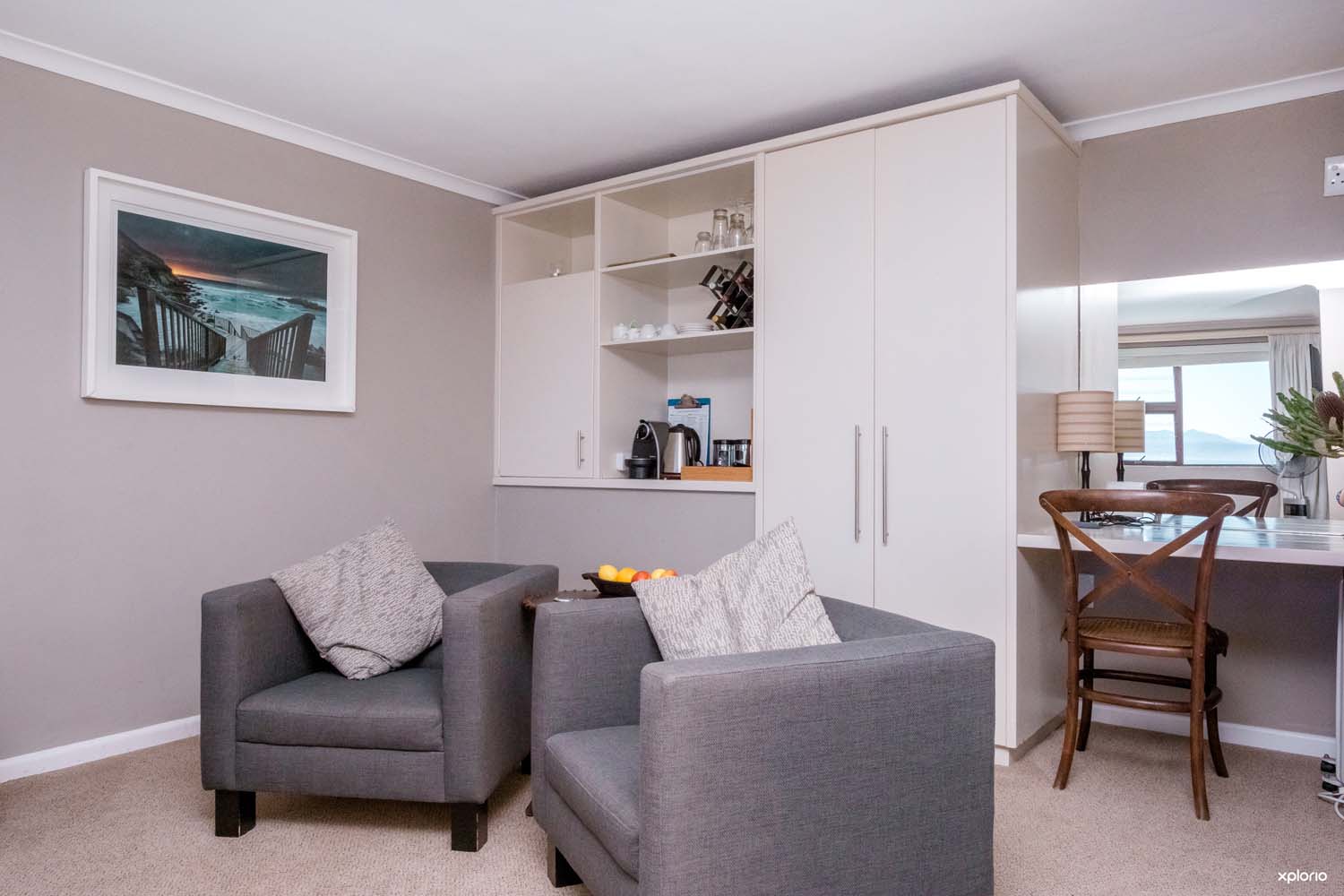 This spacious room boasts magnificent views of Walker Bay and has its own balcony.The room has the option of having a king-size bed or twin beds and has an en-suite bathroom with a bath, shower, basin and toilet.