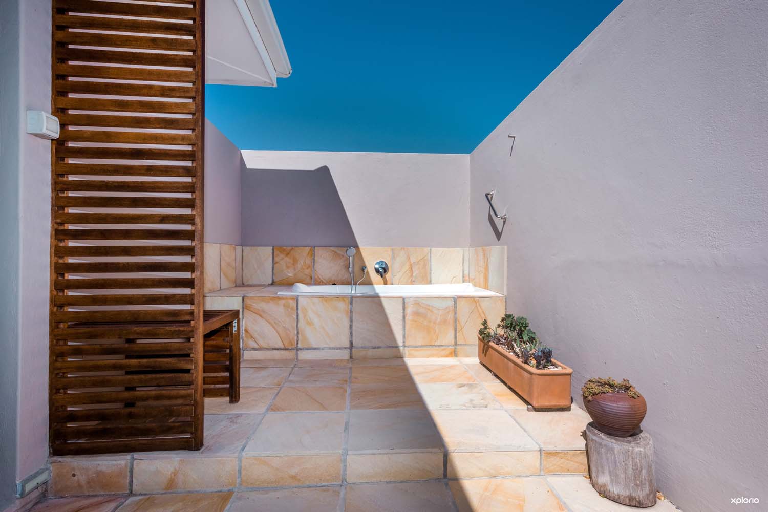 This stylish room has a wonderful outside patio area that overlooks an aloe garden and the ocean.The East Room has a unique private outdoor shower which will take stargazing to a whole new level. The room has the option of having a king-size bed or a twin beds and has an en-suite bathroom with a bath, basin and toilet.