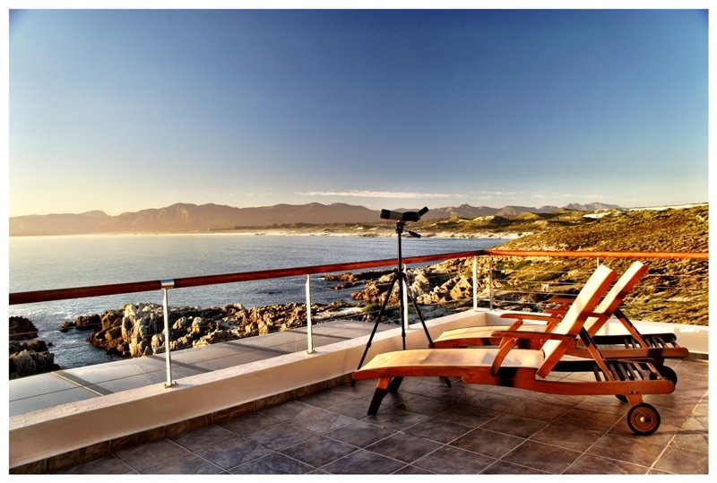 This self-catering cottage has a beach house like atmosphere and is located right next door to the main Lodge. The open-plan living and kitchen areas are tastefully decorated with all the furniture and equipment you will need to make your stay comfortable. There is an indoor fireplace in the living area which leads to a spacious wooden deck that has a dining area and an outdoor braai where you can absorb the spectacular view of Walker Bay.