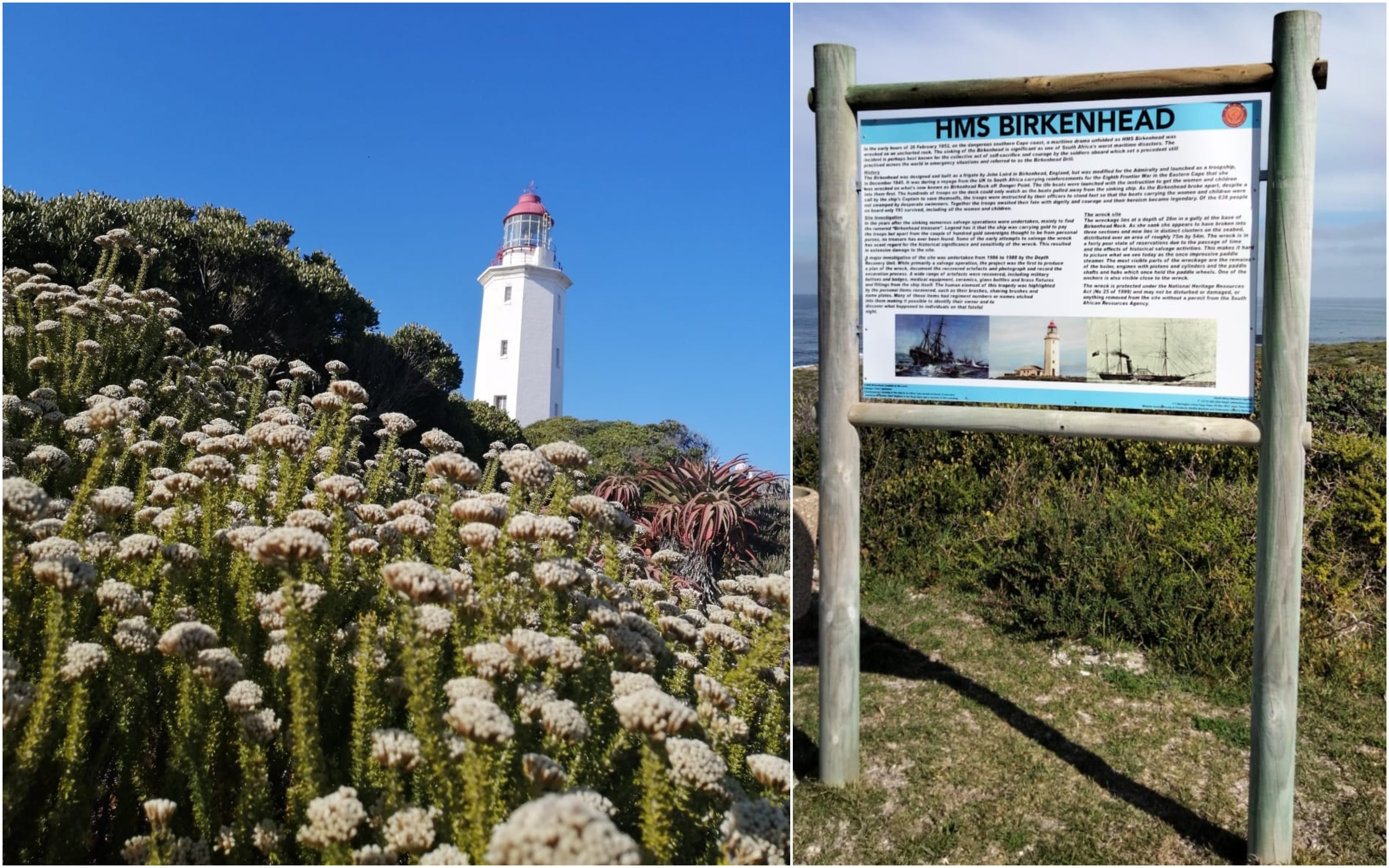 A memorial on the lighthouse grounds commemorates the brave soldiers who perished when the ill-fated HMS Birkenhead struck an unmapped submerged rock only 1.7 kilometres offshore. That fateful night when more than 450 soldiers stood fast as all the women and children aboard the ship made their way to safety in the few available lifeboats, has been cemented in history.