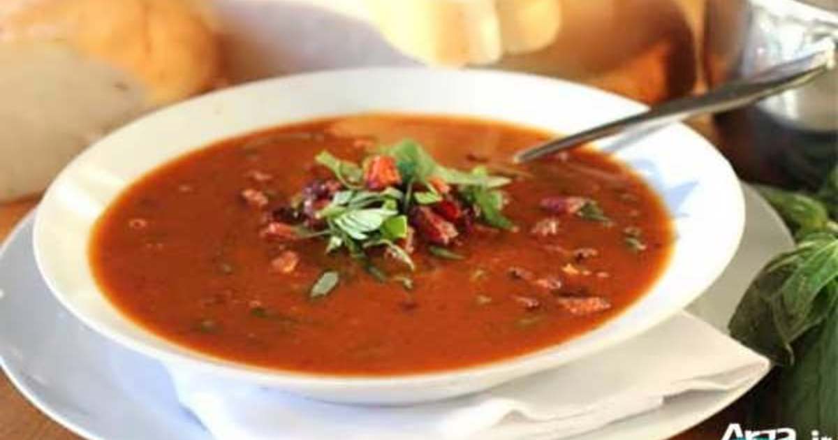 7. Blend this soup or use a stick mixer to liquify and then strain with a sieve to remove tomato seeds and skin etc.