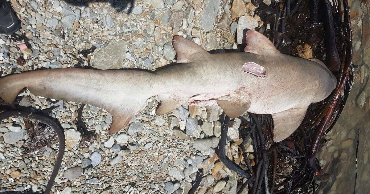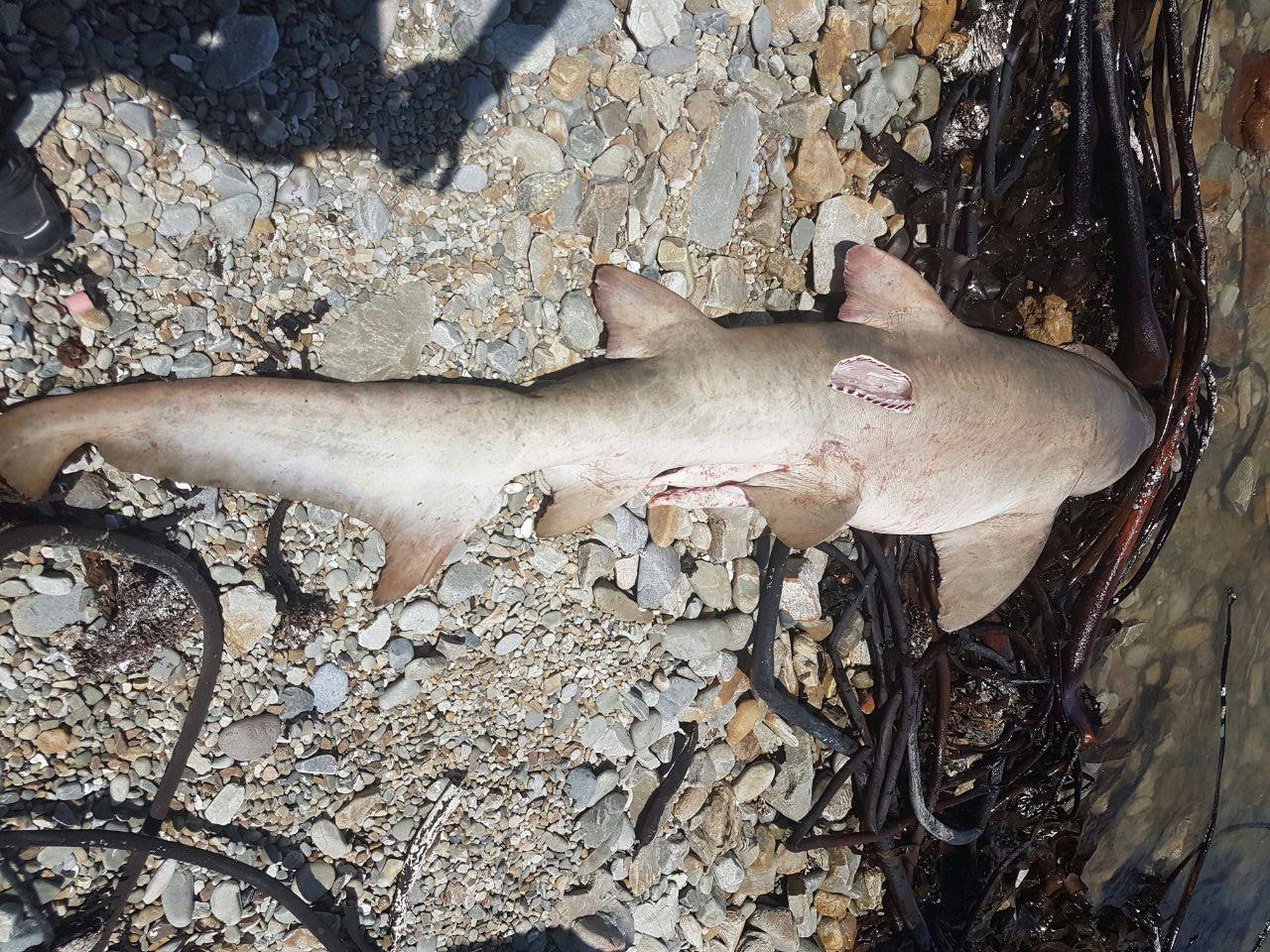 Recently, the Dyer Island Conservation Trust received a call to inform us about a washed up shark in the Franskraal area. Upon arrival our team found a 2.7 m Ragged-tooth shark (Carcharius Taurus). The shark had a stab wound in it's neck, which most likely caused it's death. The death of this shark is unfortunate and if accidentally caught could have been released.