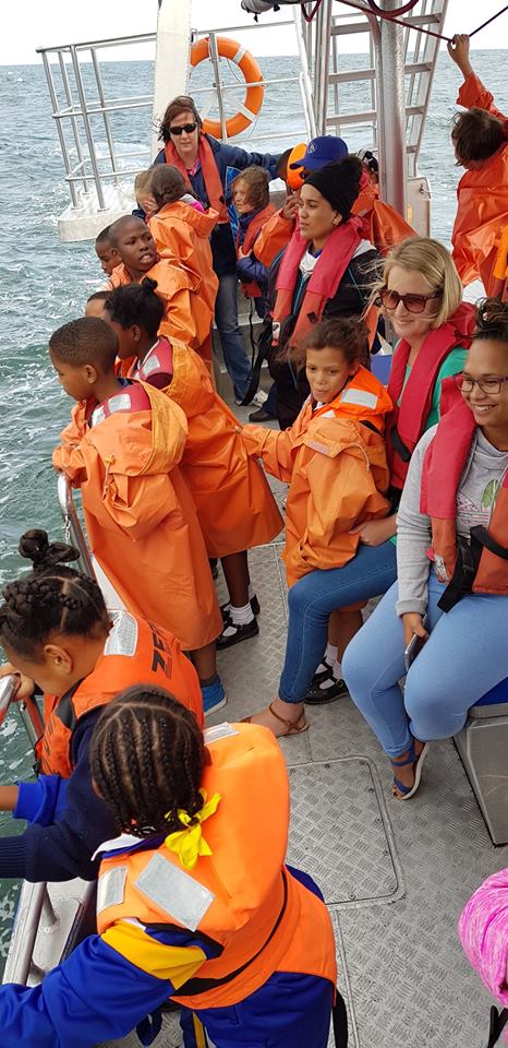 The Trust’s educator, Pinkey MaMiya Ngewu, explained more about the Dyer Island ecosystem and after the trip handed each winner a backpack from the Overstrand Municipality and recycled pencil sets donated from DEA (Department of Environmental Affairs) & DP Oceans & Coast department.