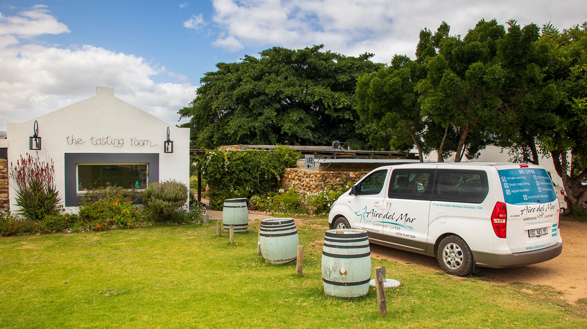 Aire Del Mar Guest House is situated in Kleinbaai just a few minutes drive from Gansbaai. The guesthouse has nine rooms, six on the upper level and three on the lower level. Eight of the rooms have views of the Atlantic Ocean, while one has a lovely mountain view. Included in your stay at Aire Del M...