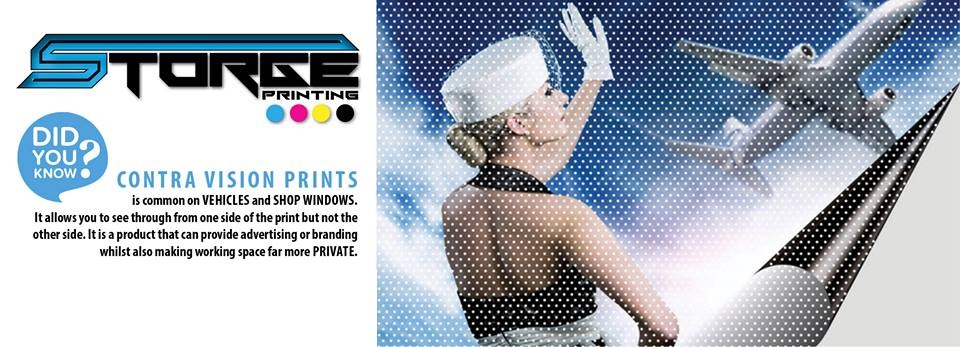 Contra Visions Prints is common on vehicles and shop windows. It allows you to see through one side of the print but not the other side. It's a product that can provide advertising or branding whilst also making working space far more private.