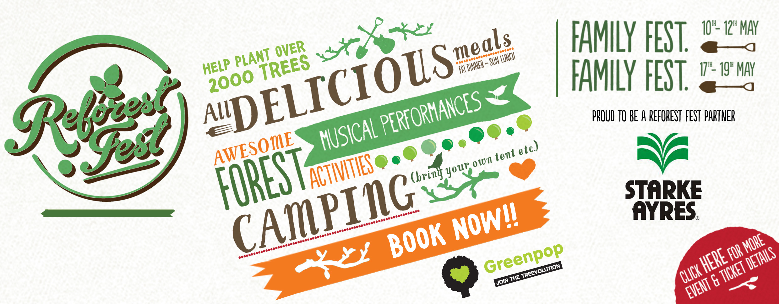 Tickets for the festival include the music festival, camping as well as meals and all the fun activities and tree planting. The Reforest Fest starts today and continues through the weekend till Sunday night at 10:00 pm.