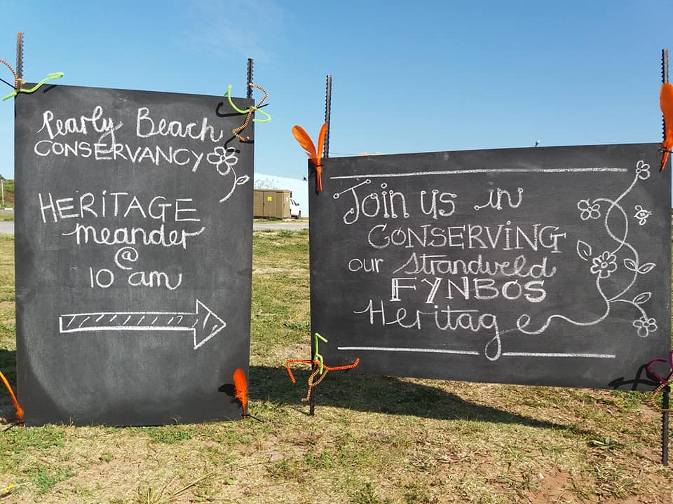 The Meander starts and ends at the Herbarium in Pearly Beach, where the plant life of the village has been documented over the years. Fresh flowering specimens are displayed there every week throughout the year. The Herbarium and the Fynbos Garden were established by Heilie Mostert, who was a longstanding member of the Conservancy, when she lived in Pearly Beach. She worked very hard to get these two landmarks established in the village. On this Heritage Day weekend, it seemed fitting to pay tribute to Heilie for her conservation efforts by erecting a special plaque created in her name. She was instrumental in preserving our natural fynbos heritage for generations to come. The Pearly Beach Conservancy invites everyone to continue her valuable work in conserving our natural heritage.