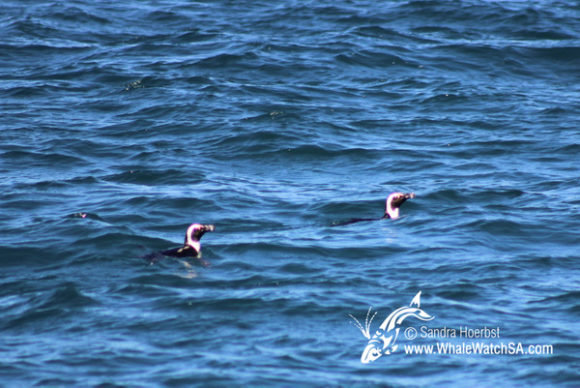 On the second trip we were very lucky and found a group of incredibly playful Bottlenose dolphins early in the trip. They came to Dream Catcher bow ride next to the boat, jumping out of the water on both sides of the boat. One dolphin had a very distinctive dorsal fin that has been very damaged in some way, but we don’t know how this happened. This looked like an old wound, however, and the dolphin appears fine. We left the dolphins and on the way to the shark diving boats got to see two African Penguins sitting in the water. We watched a Great White Shark lift its head clear out of the water by our sister boat, Slashfin, and then found two adult Southern Right whales not far away towards Pearly Beach. After getting some really nice looks at the two whales, slowly travelling, we then stopped by the fur seal colony once again. The lucky passengers on this trip got to see the Marine Big 5, not something that happens every day.