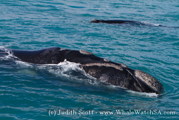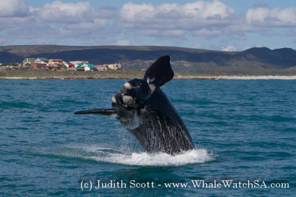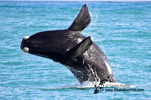 On both our tours today we had Southern Right whales in the Pearly Beach area. The whales we saw were Mother and calf pairs. During both excursions we had a very curious calf, but the second tour of the day was incredibly lucky as we not only saw the calf come very close to the boat, we also saw it do a lot of breaches, some of them very close. We also saw some lobtailing, the mother whale breaching in the distance and one spy-hopping. It really was an incredible trip and was the most active calf we have seen all season. Passengers on this trip also got to briefly see a Humpback whale and two Bronze Whaler sharks.
