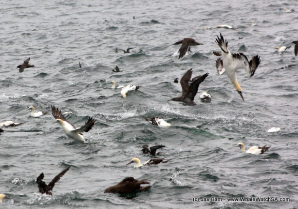 We spotted two Brydes Whales early in the trip, feeding in an area with several White-Chinned Petrels, Swift Terns and Cape Gannets. We had what we consider to be a typical sighting of these shy cetaceans, they came up a couple of times before they took deep dives, after which we moved off.
