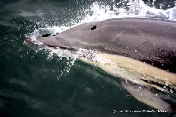 A bait ball with birds alone is absolutely awesome, the Gannets dive from a height of 30m and hit the water at up to 80km/h making for a spectacular show but today, we had a couple more creatures added to the mix. As we approached, we noticed a disturbance in the water below the birds and, by disturbance I mean a mega pod of around 2 000 Common Dolphins and what must have been at least 5 majestic Brydes Whales.