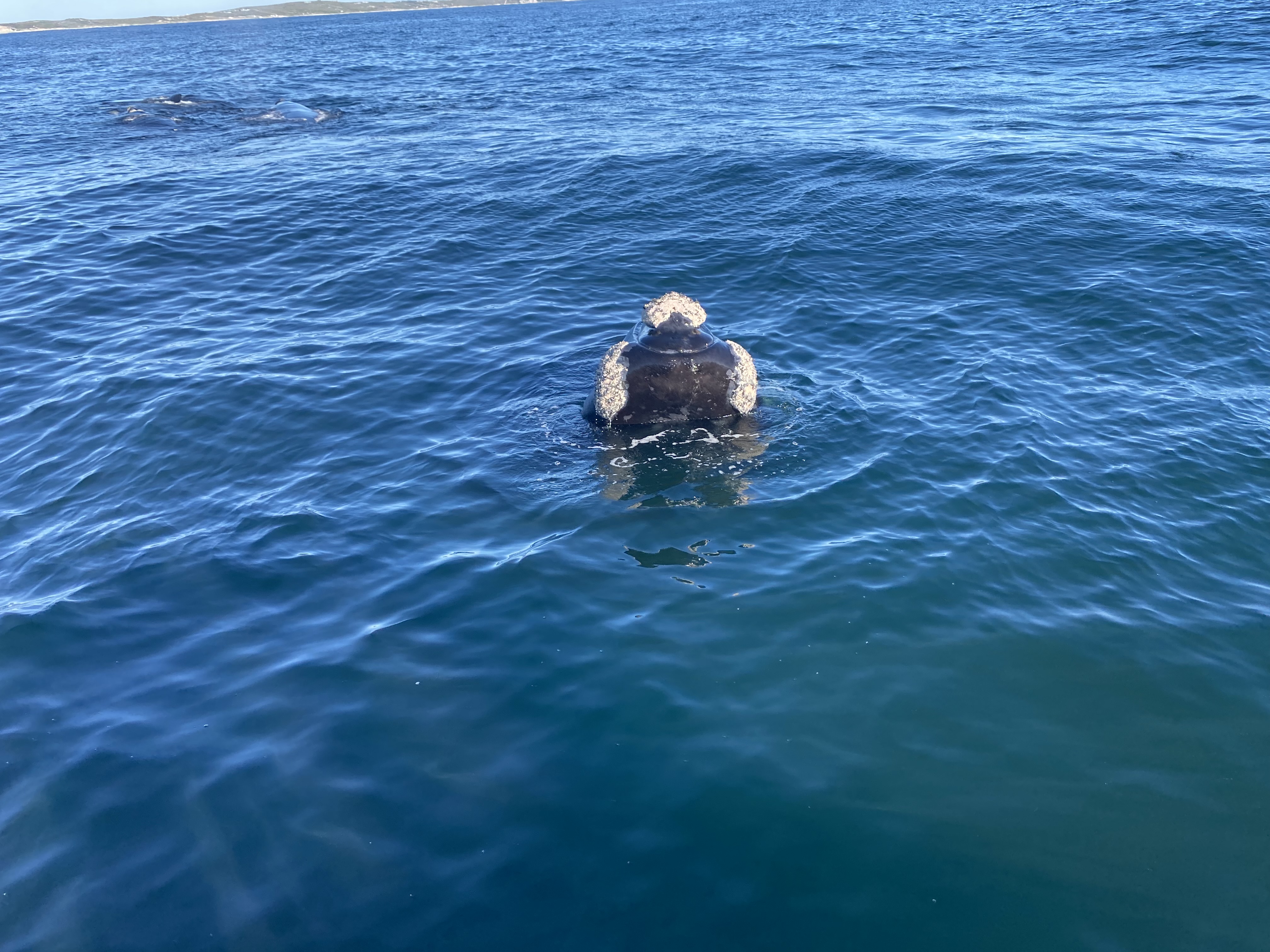 We saw a few Whales milling around and learned that this was a mating group, it was difficult to discern who was who and there were at least three Whales in this group. The skipper stopped the boat and, in no time, the Whales had moved pretty close to the boat, that's when we saw the eye watching us. On that particular day, the water was very clear and we could see the callosities catching the sun’s rays under the water, very close to the boat... what a stunning experience. We spent some time with this group, then slowly moved off and located another such group close by.